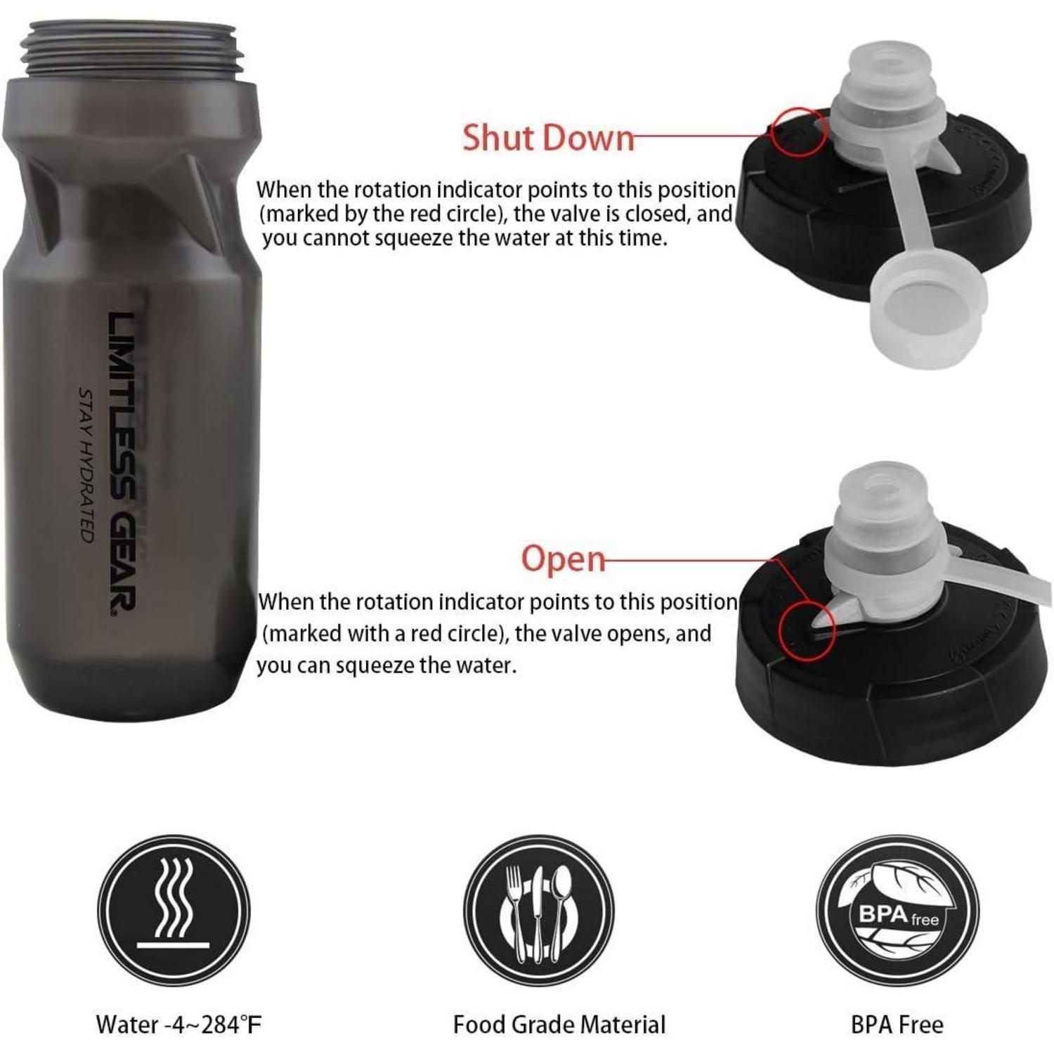 Easy Squeeze: Die 21-Unzen-Fahrradtrinkflasche besteht aus strapazierfähigem, quetschbarem Polyethylen. Die Push/Pull-Kappe ermöglicht ein einfaches Öffnen und Schließen und einen starken Wasserfluss, um Ihren Durst unterwegs zu stillen.