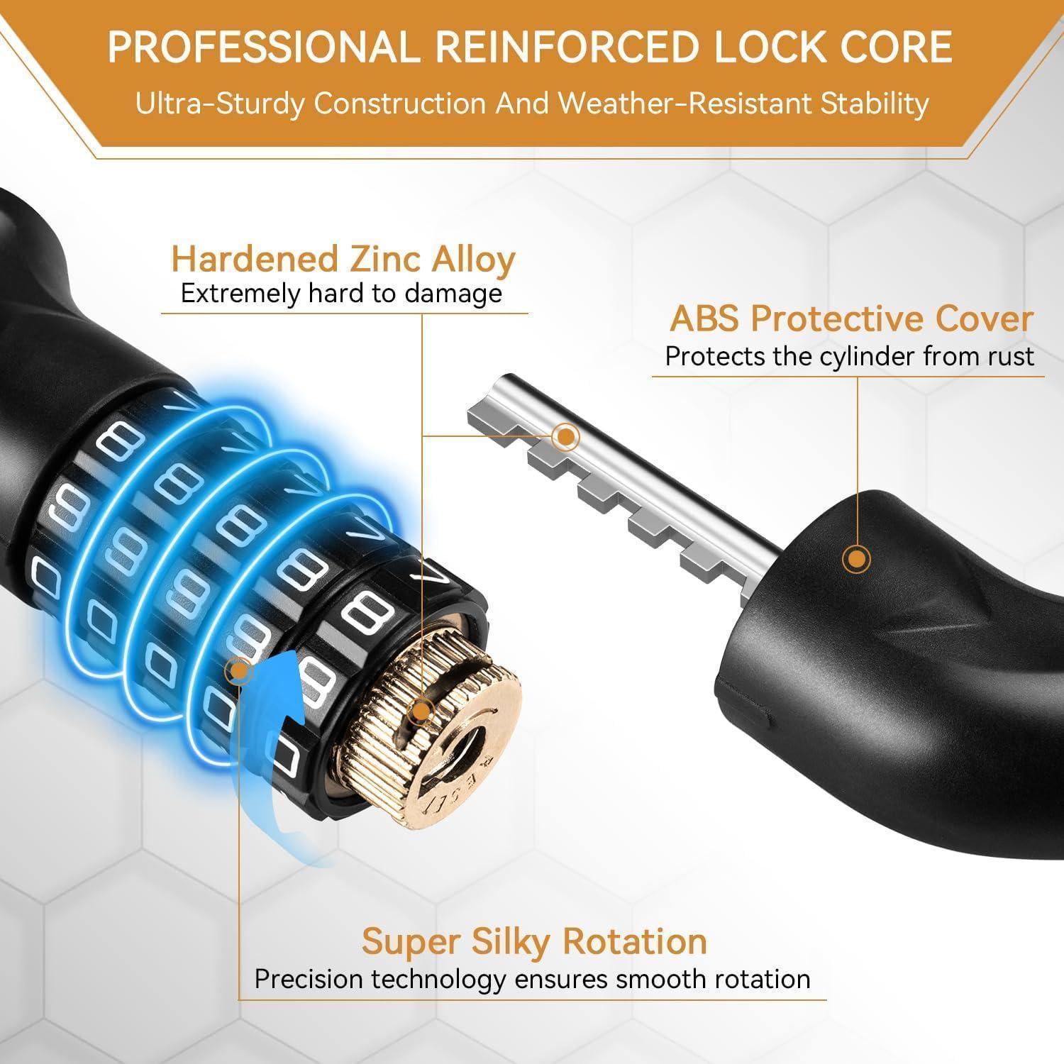 Gehärtete Stahlkettenglieder: Das Fahrradschloss besteht aus hochfesten Zink-Schließzylinder und harten ABS-Schalenschlosskopf für maximale Sicherheit.