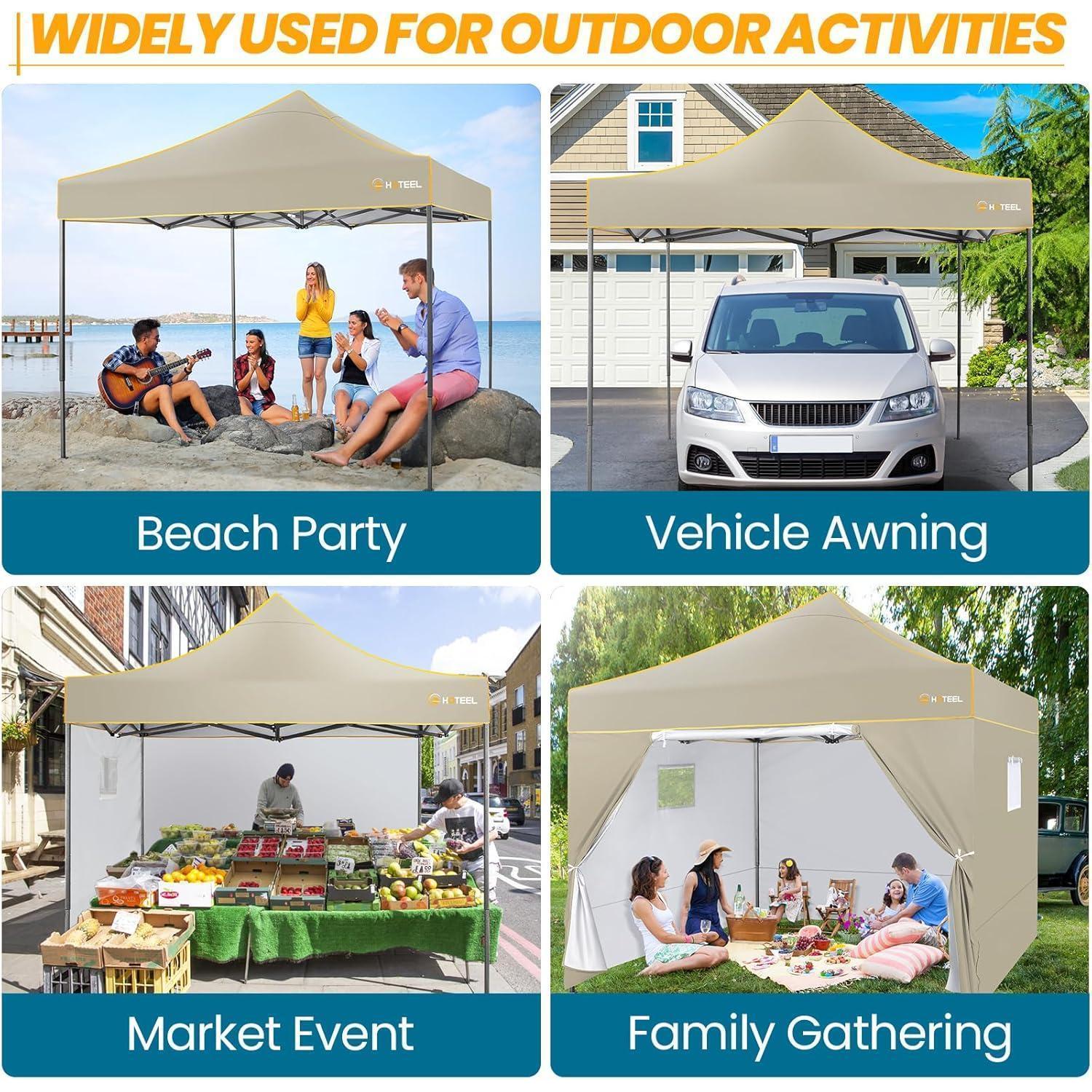 Vielseitig einsetzbar: Mit 4 abnehmbaren Seitenwänden und 3 Stufen Höhenverstellbarkeit eignet sich dieser Pavillon perfekt für Gartenpartys, Camping, Marketingveranstaltungen, Strandaktivitäten und vieles mehr.