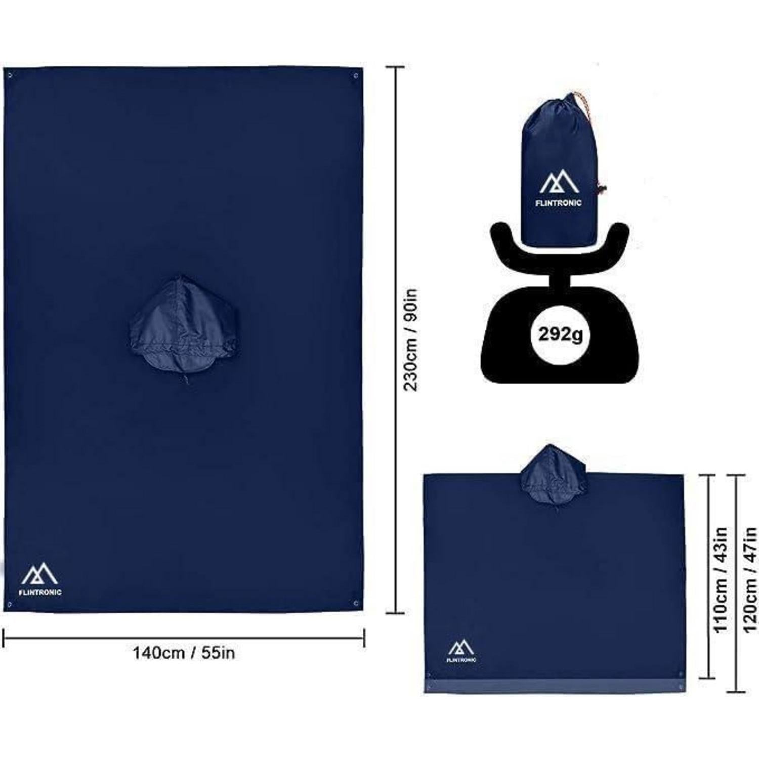 Der flintronic wasserdichte Regenponcho in Blau ist der ideale Begleiter für Outdoor-Enthusiasten bei Regenwetter. Mit einer Größe von 230 x 140 cm bietet der Poncho ausreichend Schutz vor starkem Regen, sowohl für dich als auch für deinen Rucksack. Die Bewegungsfreiheit wird durch die großzügige Größe nicht eingeschränkt, und dank des atmungsaktiven Polyestergewebes ist ein angenehmes Tragegefühl garantiert.