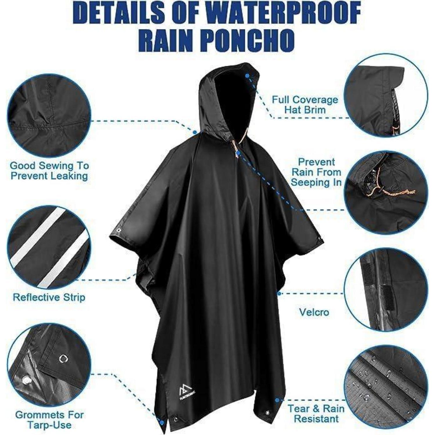 Flintronic Wasserdichter Regenponcho 3 in 1 für Wandern