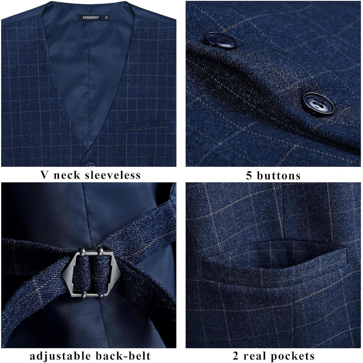 Formale Hochzeitsfeier Baumwolle Plaid Anzug Weste Herren XS