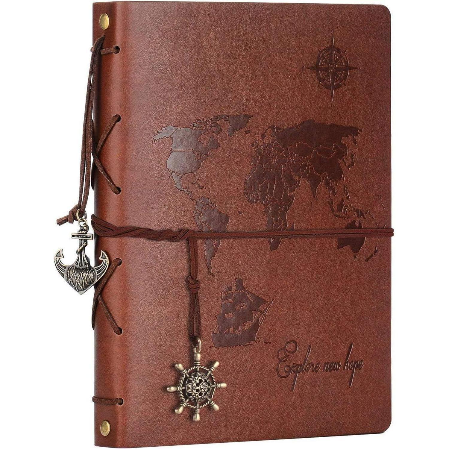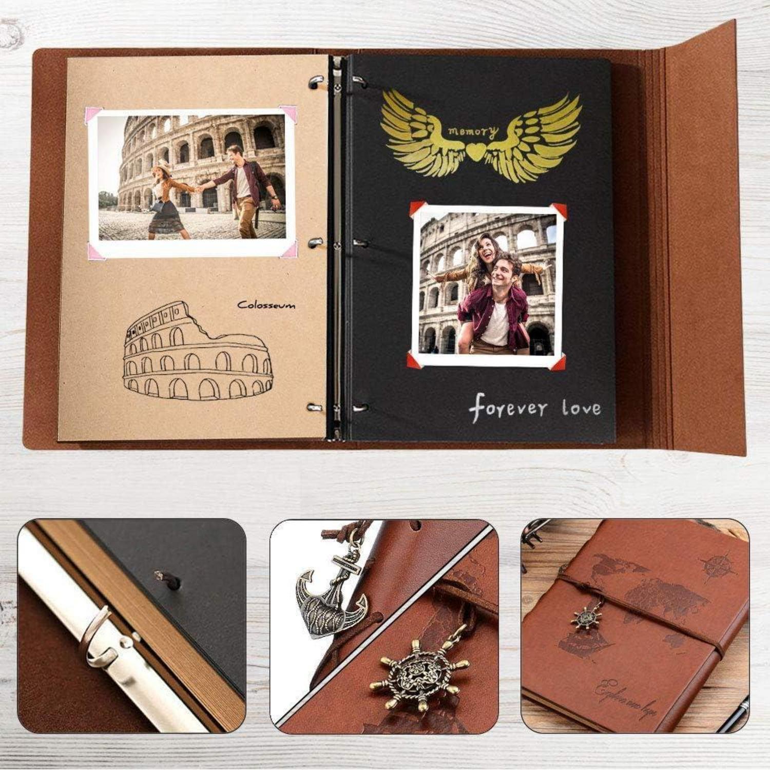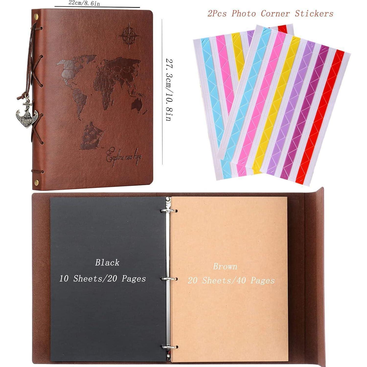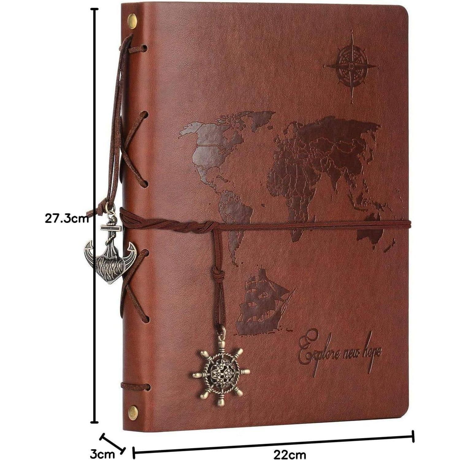 Fotoalbum Scrapbook Weltkarte Leder 60 Seiten Braun