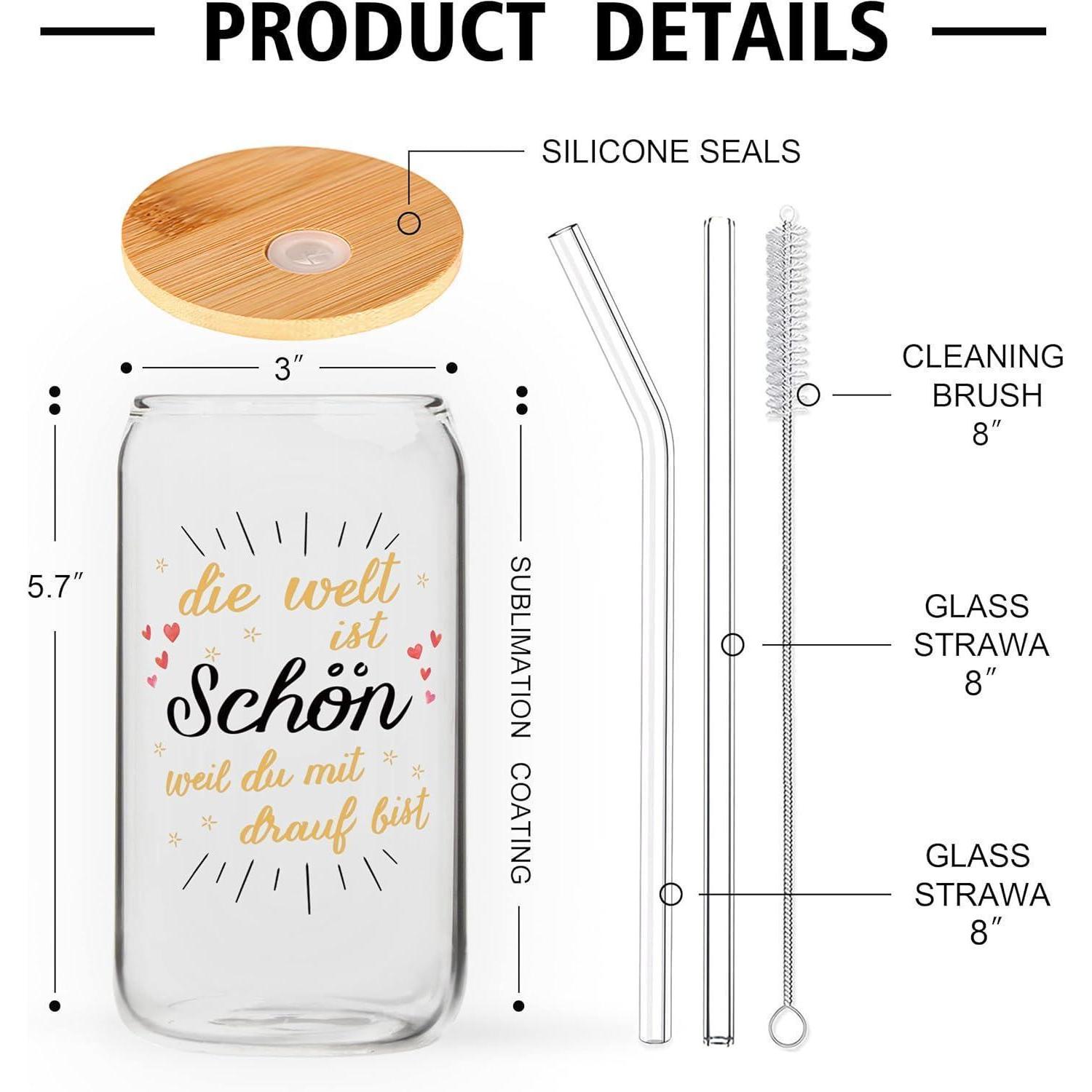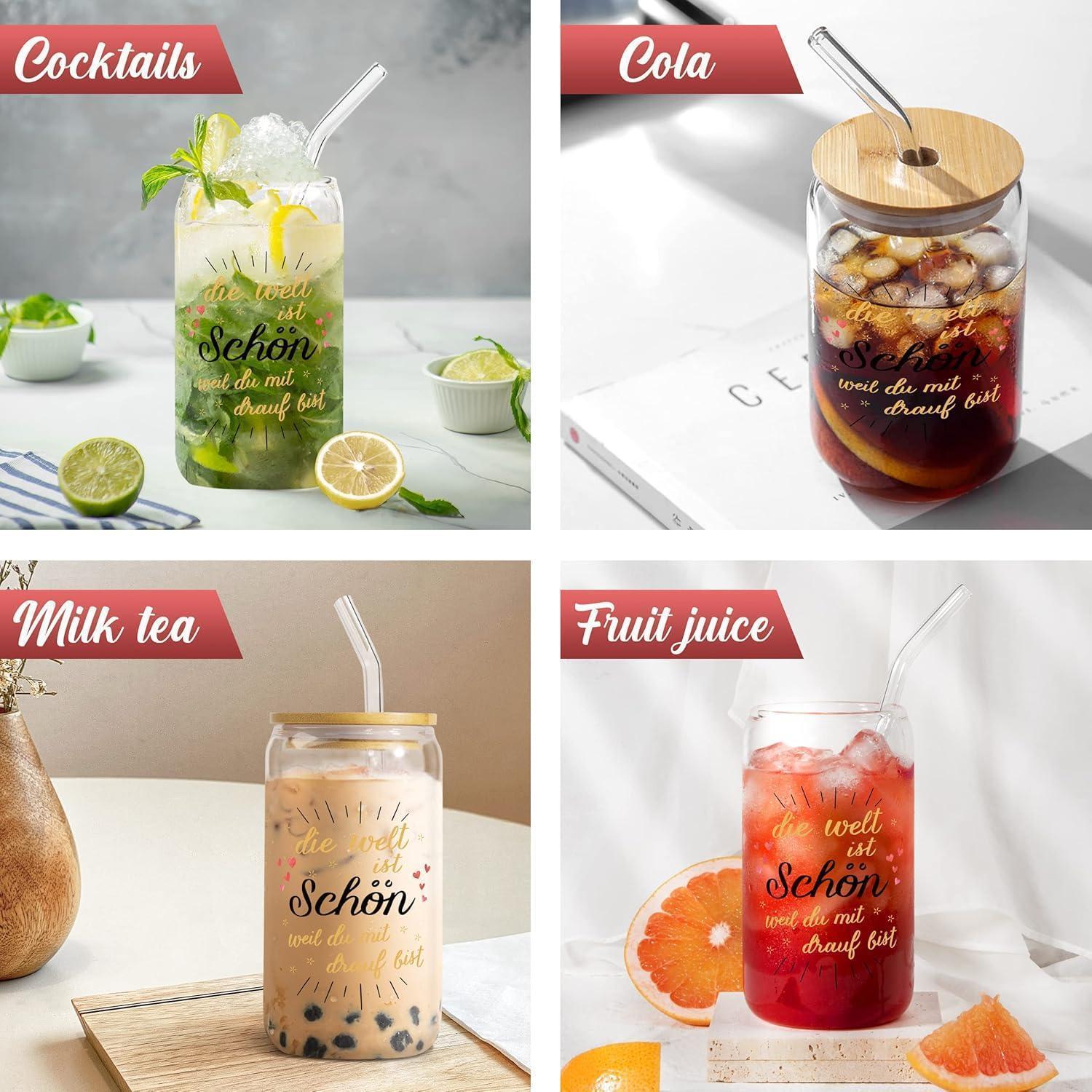Kreatives Design und hohe Qualität: Geschenke für Frauen müssen am sinnvollsten und hochwertigsten sein. Die Trinkgläser bestehen aus hochwertigem, langlebigem Klarglas, bleifrei und BPA-frei. Es kann maschinenwaschbar sicher für eine lange Zeit verwendet werden. Sie können es verwenden, um perfekten Tee, Boba Bubble Pearl Milk Tee, Soda, Wasser, Eiskaffee, Smoothie, Fruchtsaft oder andere interessante Urlaubsgetränke zuzubereiten.
