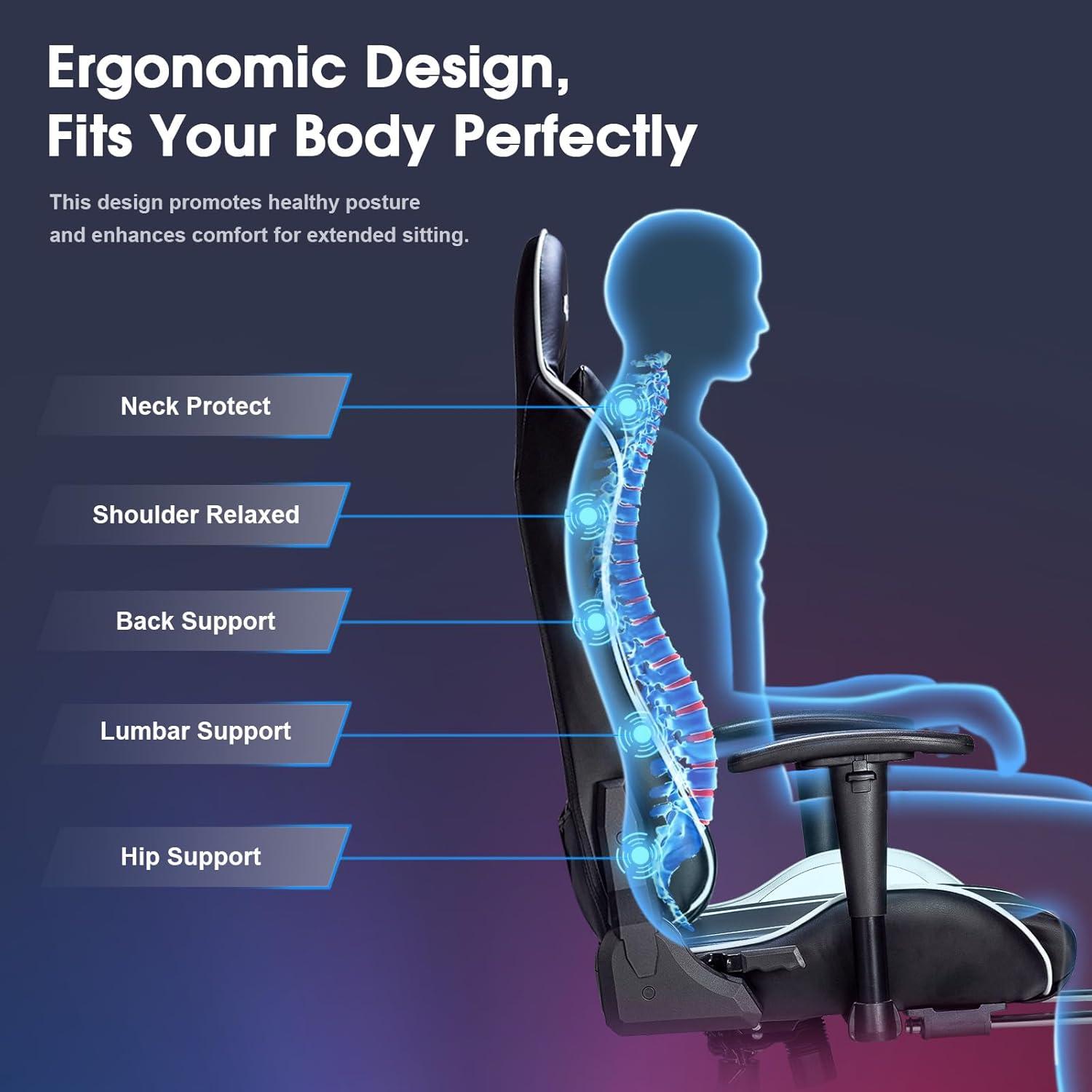 Gaming Stuhl mit 7-Punkt Massage Fußstütze