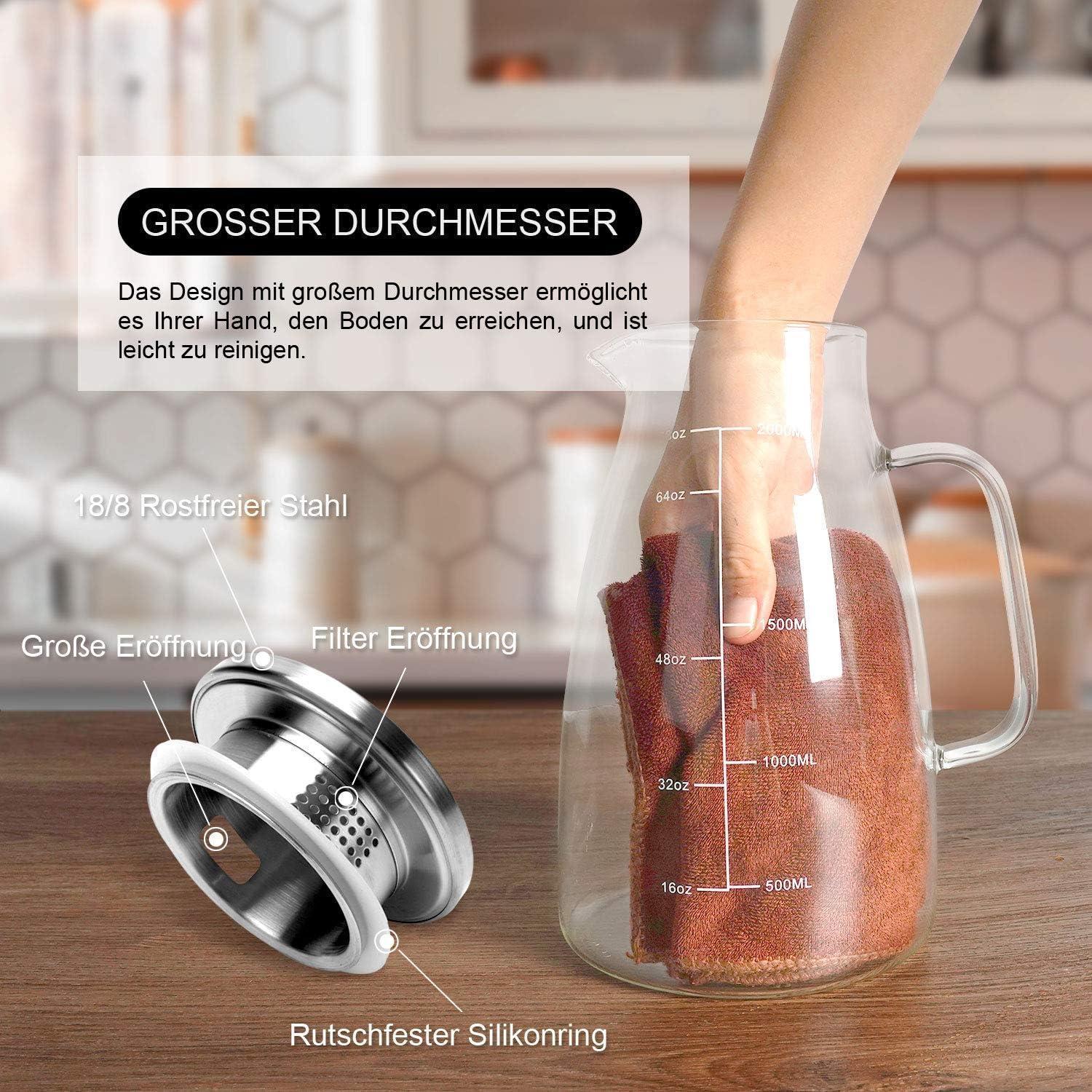 Glaskaraffe 2 Liter mit Deckel - Wasserkaraffe & Eistee