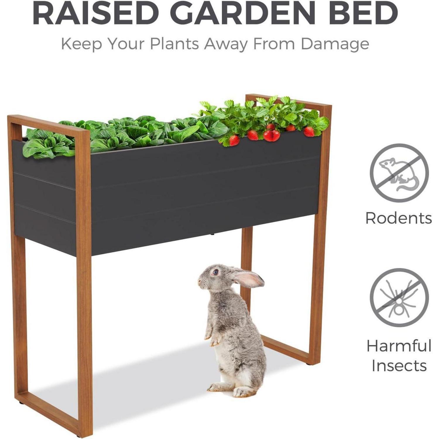 ERGONOMISCHE HÖHE: Das Hochbeet mit Beinen ist 91 cm hoch. Es ist so bequem, die Pflanzen auf Hüfthöhe zu erreichen und sich nicht bücken zu müssen, um den Garten zu bewirtschaften (Schützt Ihren Rücken und Ihre Knie!). Das erhöhte Pflanzgefäß ist eine großartige Lösung, um das Erdsubstrat zu kontrollieren und das Gemüse vor Unkrautschädlingen und Tieren zu schützen.