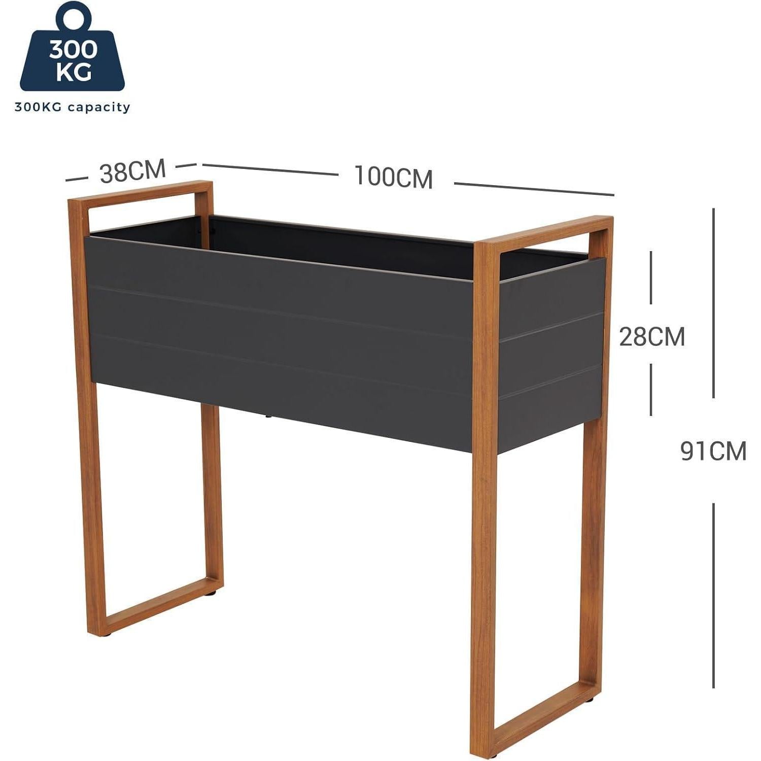 REICHLICH PLATZ ZUM PFLANZEN: Erhöhter Pflanzkasten: 100 L x 38 B x 28D(cm), fasst ca. 3,65 Kubikfuß Erde, Unser erhöhtes Gartenbeet bietet geräumigen Platz zum Anpflanzen von Gemüse, Kräutern, Blumen und anderen Pflanzen. Eine intelligente Lösung für begrenzten Platz! Perfekte Größe für Kinder und andere Gärtner!