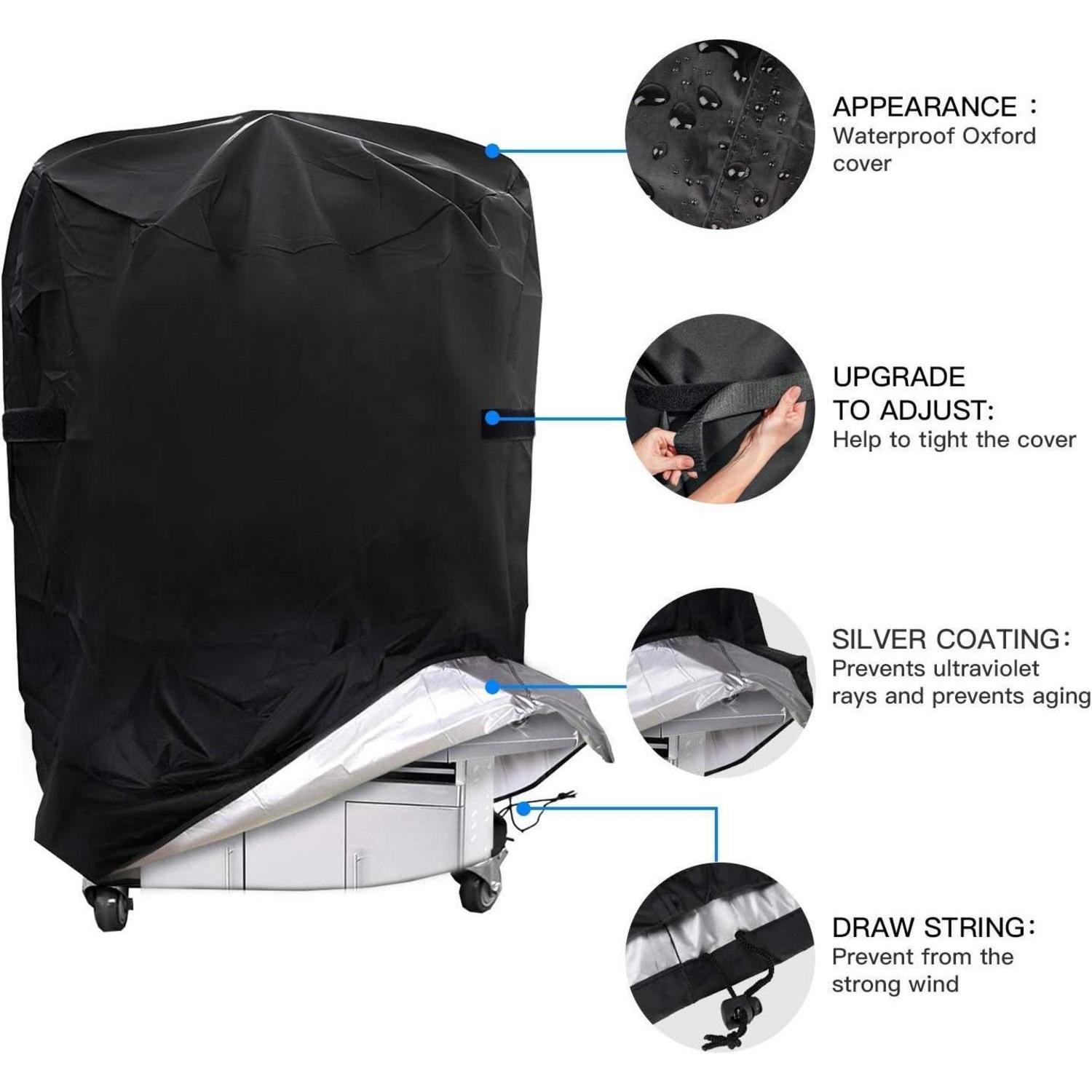 Fortschrittliche Grillabdeckung: Die Grillabdeckung besteht aus hochwertigem 210D Oxford-Stoffdoppelseitig beschichtet (Oberfläche 50 + UV-Beschichtung, Innen 3000 mm + PU-Beschichtung).Die Grillabdeckung kann Ihren Grill besser vor Sonnenlicht, Wasser und Windschäden schützen und Staub.