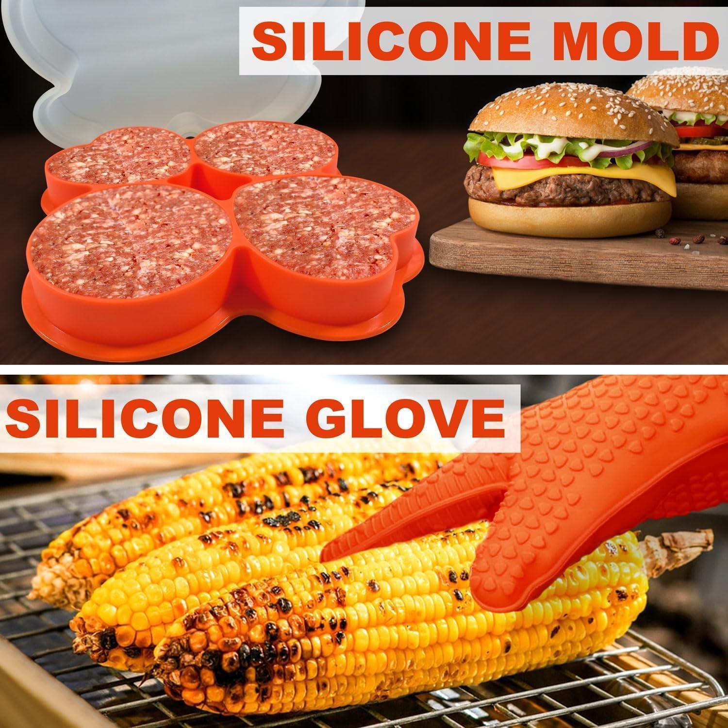 Einzigartiges Grillbesteck Set - Unser 30-teiliges Grillzubehör wird durch lebensmittelechte Silikon-Burgerformen ergänzt, die in anderen Grillbestecken nicht zu finden sind. Mit diesen Silikon-Burgerformen können Sie köstliche Burger-Patties herstellen, während Sie Ihre Grillabende mit Freunden und Familie genießen.