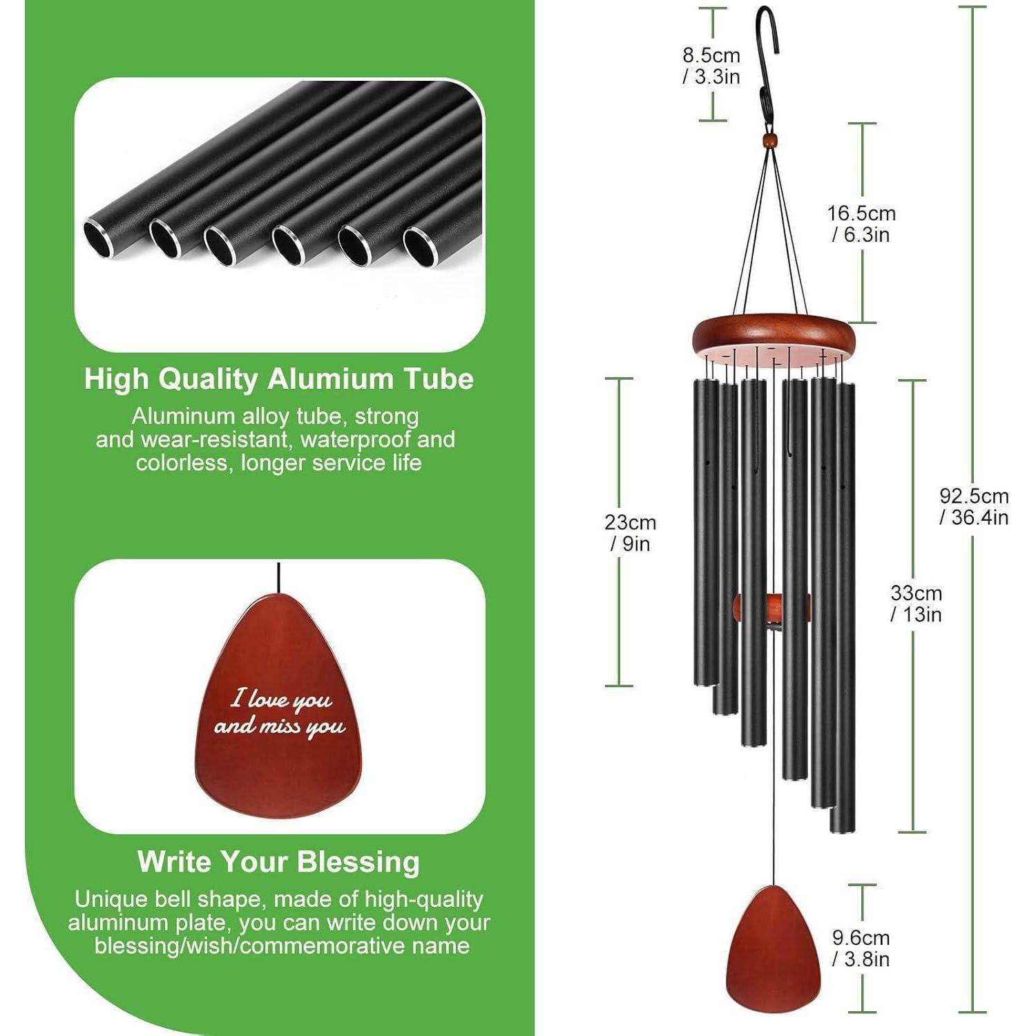 Windspiele, Geschenke für Frauen Mama Oma, 37 Zoll Große Windspiel für draußen, Metall Klangspiel 6 Rohre, Dekoration für Heimdekoration Garten Terrasse Balkon Deko, 90cm Gedenkstätte Beileid Windspiel: Der Windfänger an der Unterseite kann selbst gemacht werden, Sie können einige Worte oder Bilder darauf schreiben, um Ihren Segen auszudrücken. Die sanfte Melodie, die von den Windspielen erzeugt wird, wenn die Brise durch sie fließt, kann eine tröstliche Erinnerung an Ihren geliebten Menschen sein, geben Sie es als Geschenk für Familie, Freunde, Nachbarn und jeden, den Sie lieben, um Ihre besten Wünsche an sie auszudrücken.