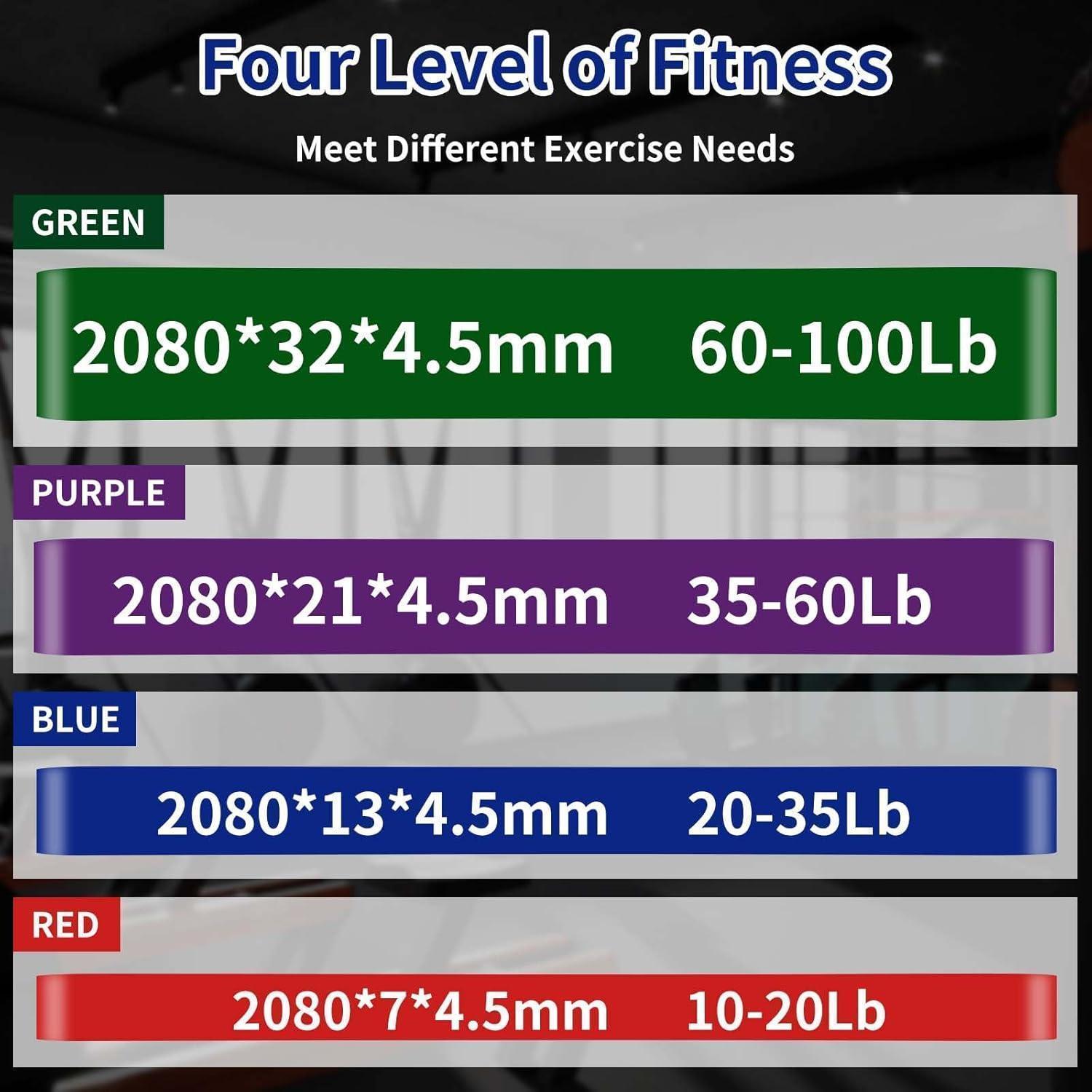 Das 5er Set bietet eine Vielzahl von Widerstandsstufen, die von 10 bis 105 Pfund reichen. Dadurch sind die Bänder für jedes Familienmitglied geeignet und können individuell an verschiedene Trainingsziele angepasst werden. Egal, ob du Anfänger bist oder ein erfahrener Bodybuilder, diese Bänder sind für jeden geeignet.