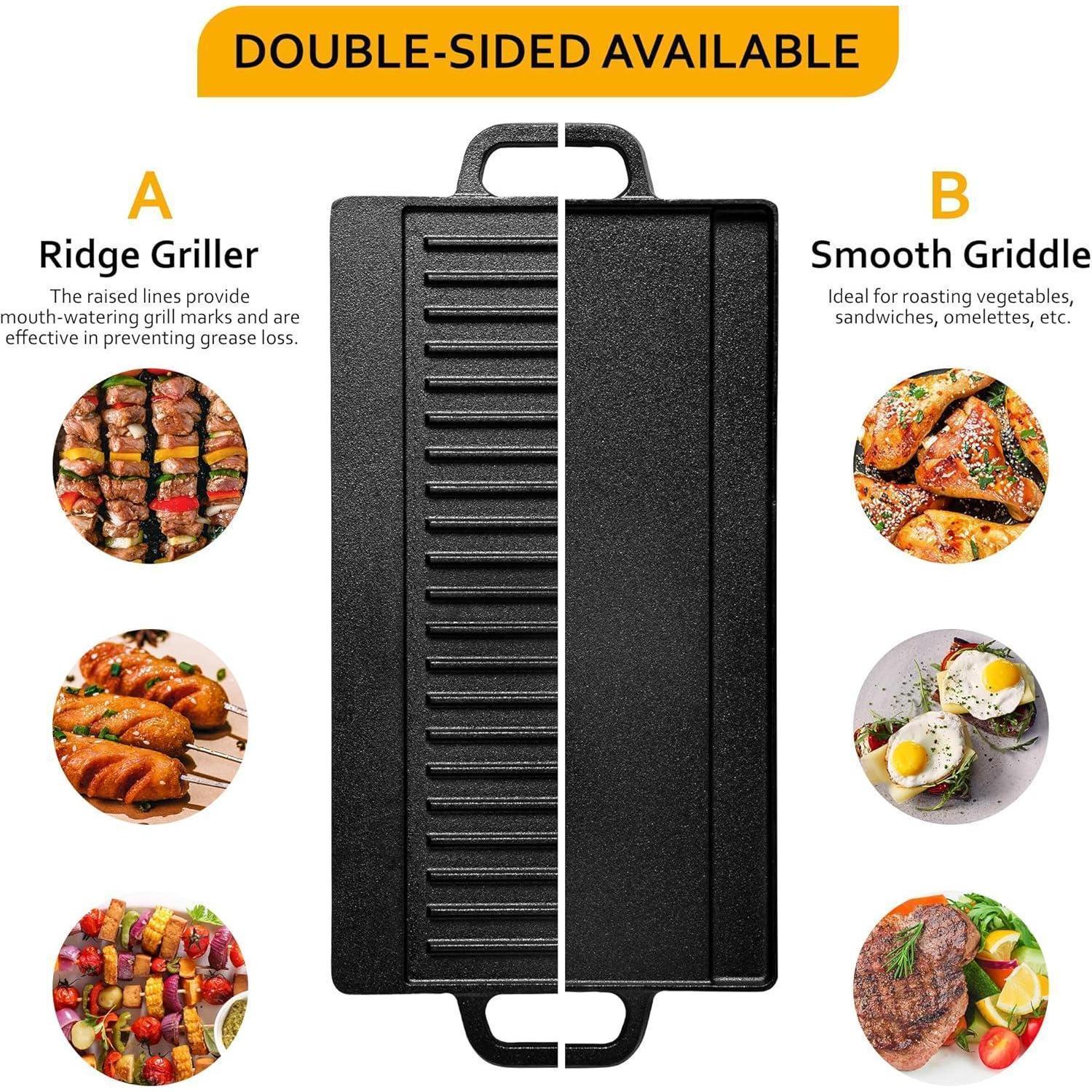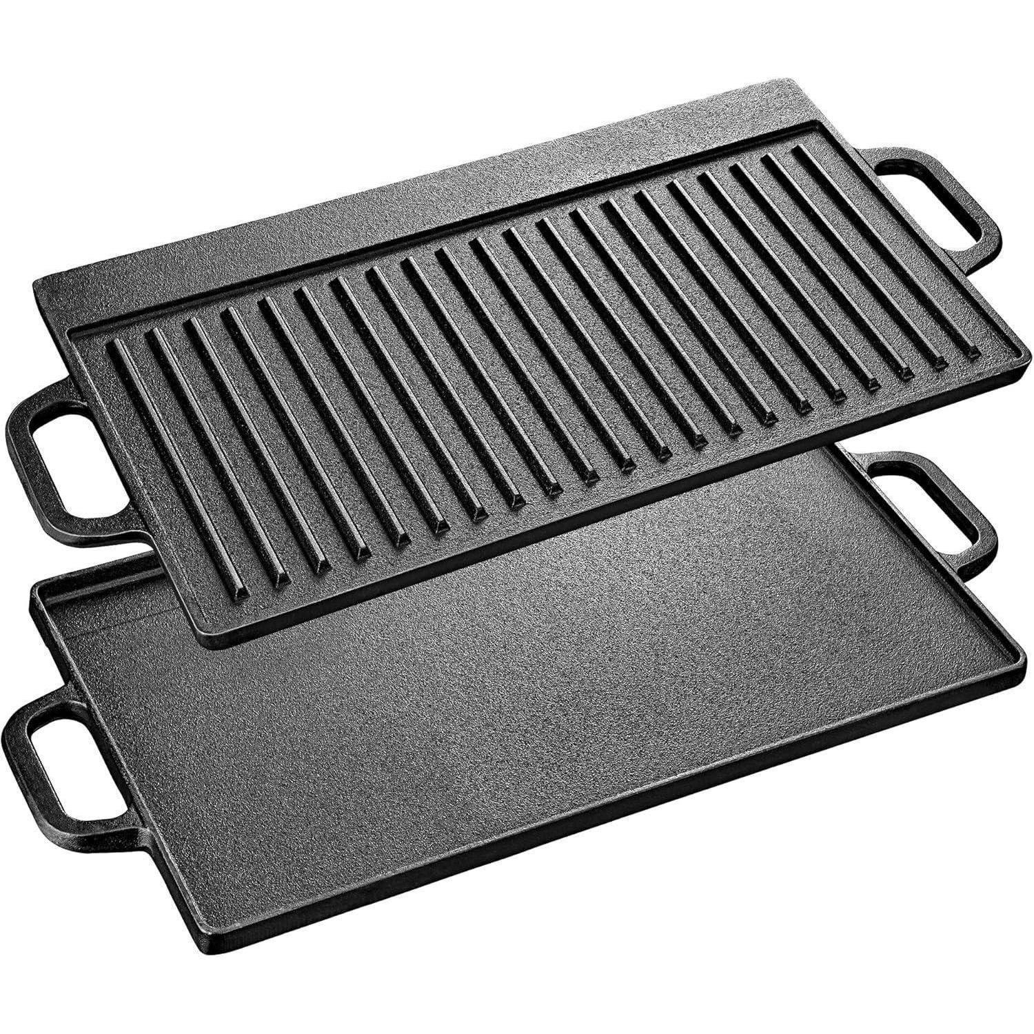 Gusseisen Grillplatte mit Griffen 42x23cm Schwarz BBQ