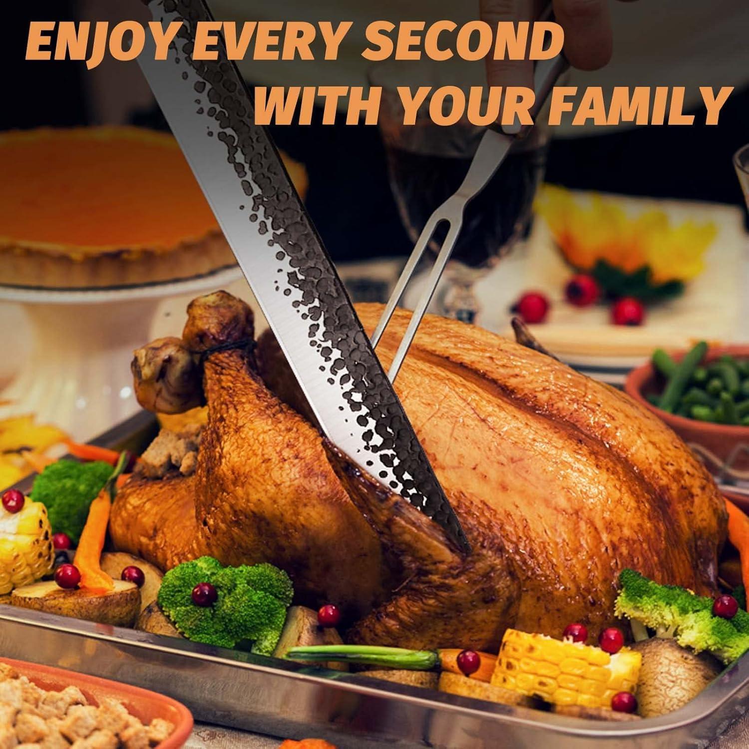 Dieses langes, breites Messer eignet sich hervorragend für verschiedene Fleischsorten wie Brust, Truthahn, Schinken, geräucherten Lachs und Braten. Es kann auch zum Schneiden von großen Früchten wie Wassermelone und Gemüse verwendet werden, was seine Vielseitigkeit unterstreicht.
