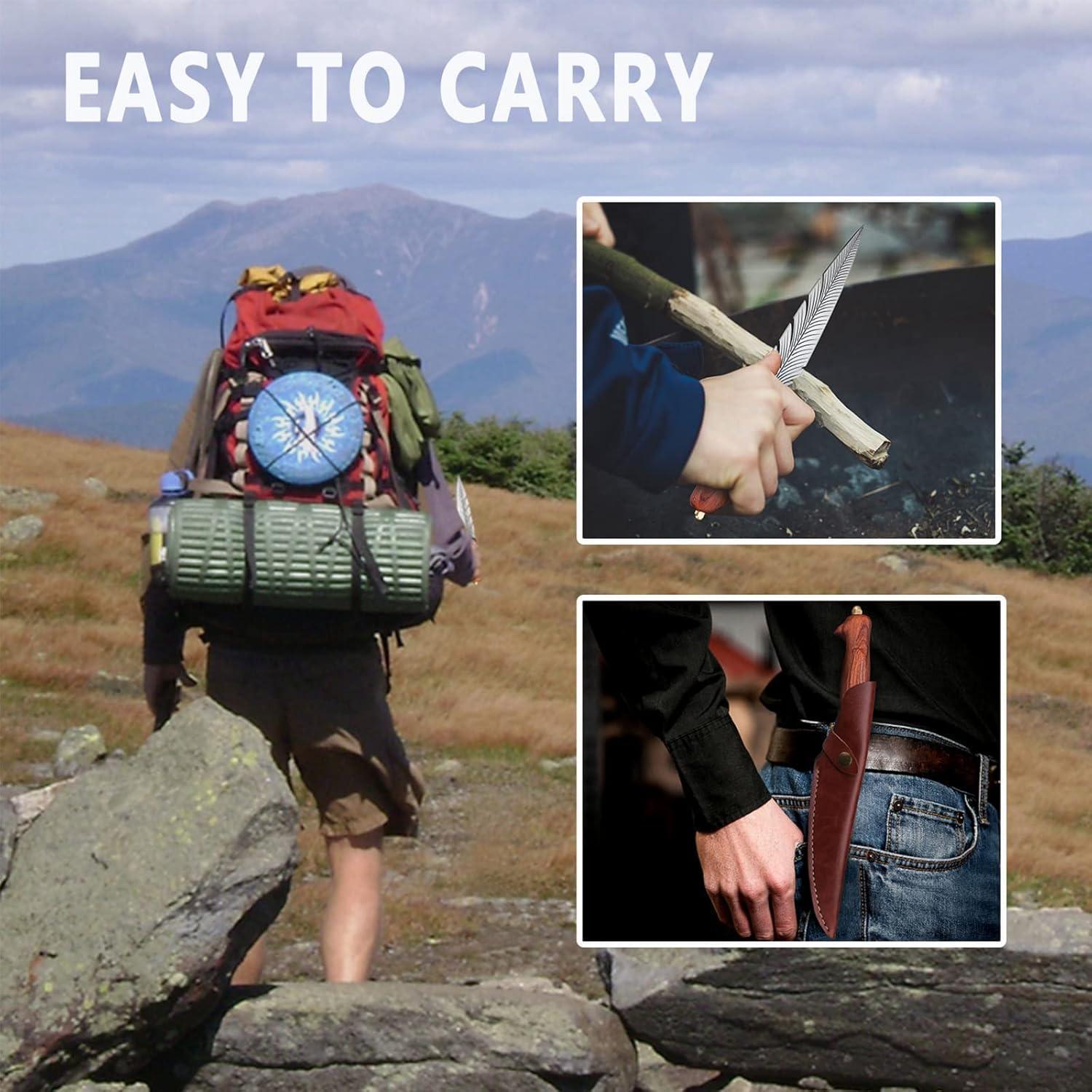Mit Scheide - Ausgestattet mit einer tragbaren Lederscheide, können Sie dieses scharfe Messer einfach am Gürtel tragen. Besonders bei Outdoor-Aktivitäten wie Jagen, Camping, Fischen und Wandern. Es ist auch cool, dieses auffällige Kochmesser für das BBQ jedes Wochenende mit Ihren Freunden zu benutzen.