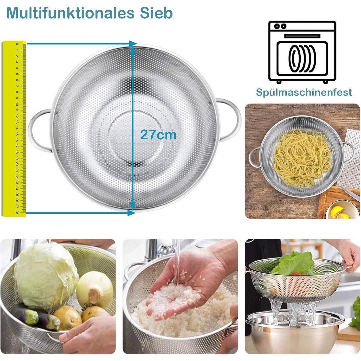 HaWare Edelstahl Küchensieb mit Griff Ø28cm | Großes