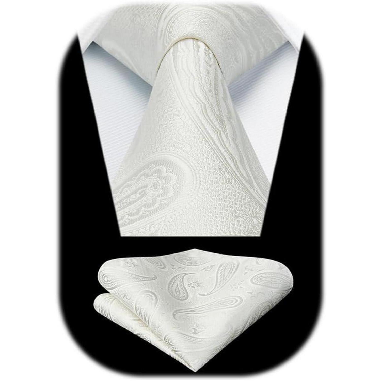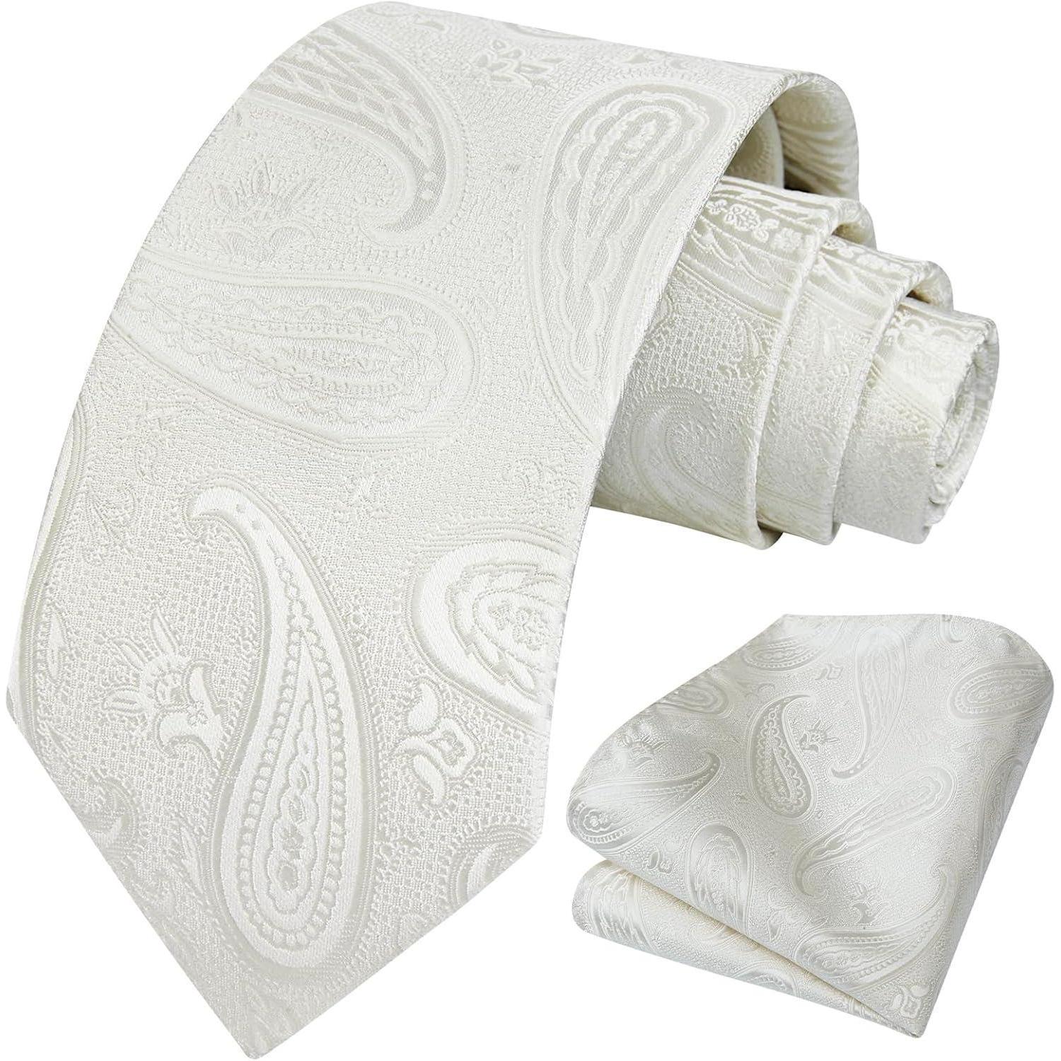 Herren Hochzeit Krawatte Beige Paisley Jacquard Einstecktuch