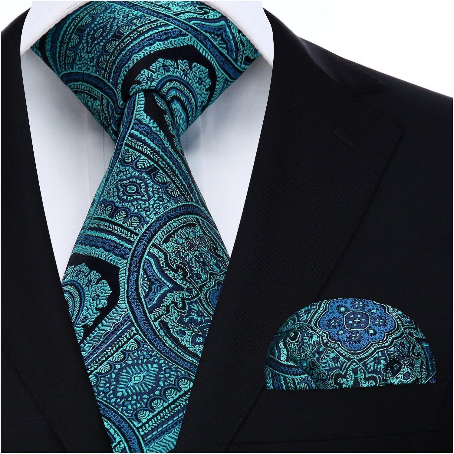 Herren Hochzeit Krawatte Einstecktuch Set Aqua Paisley