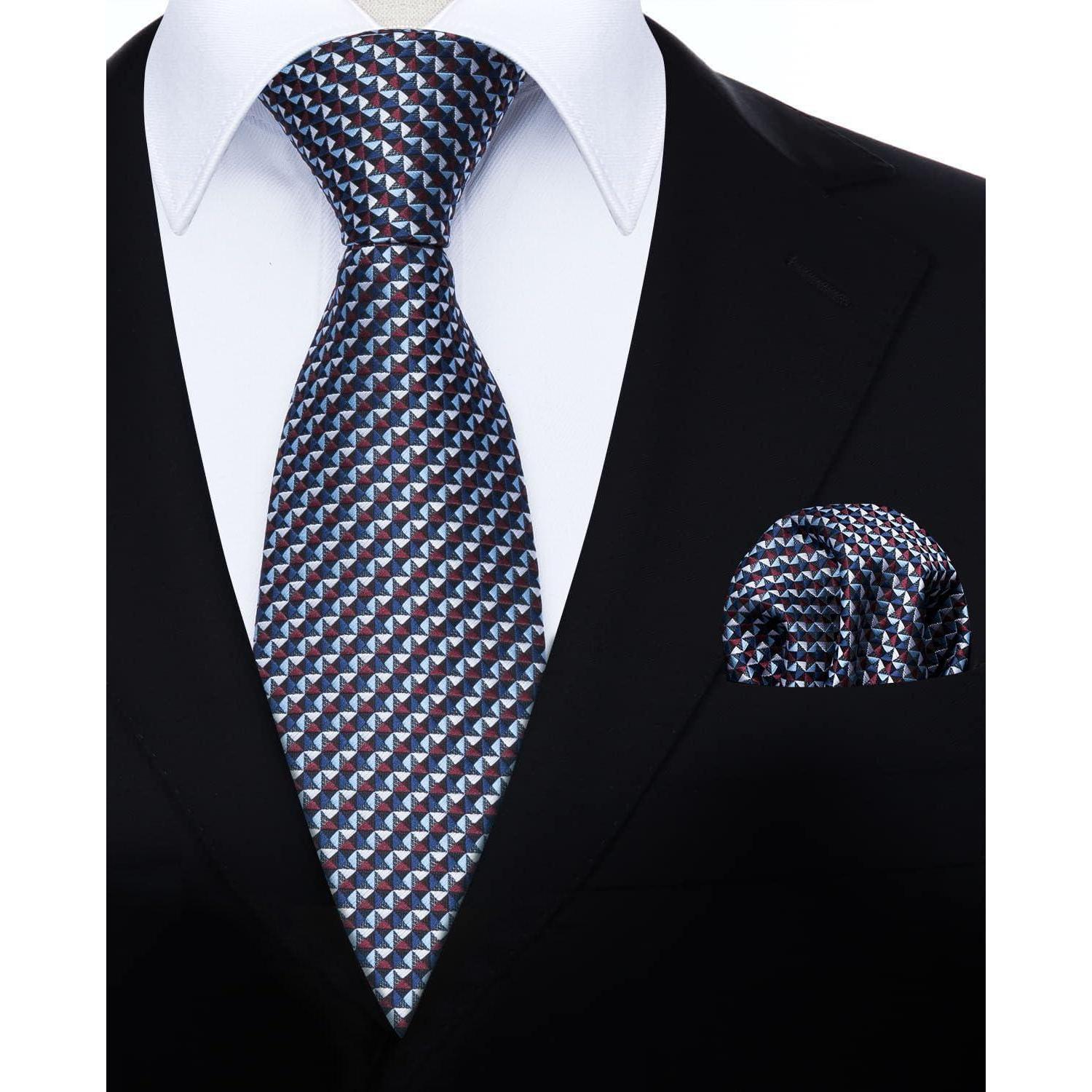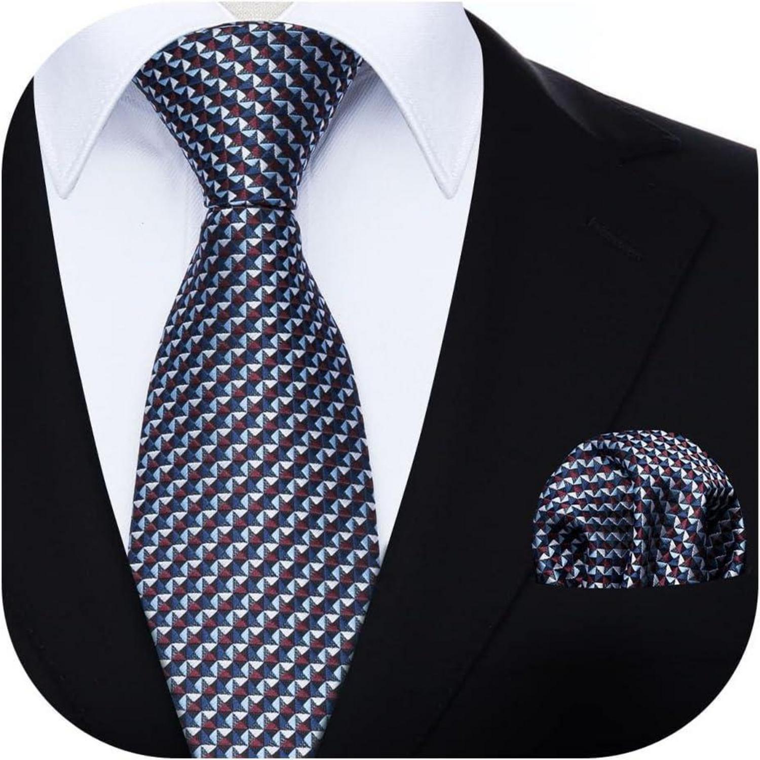 Herren Krawatten Set Blau Check Plaid Tupfen Hochzeit