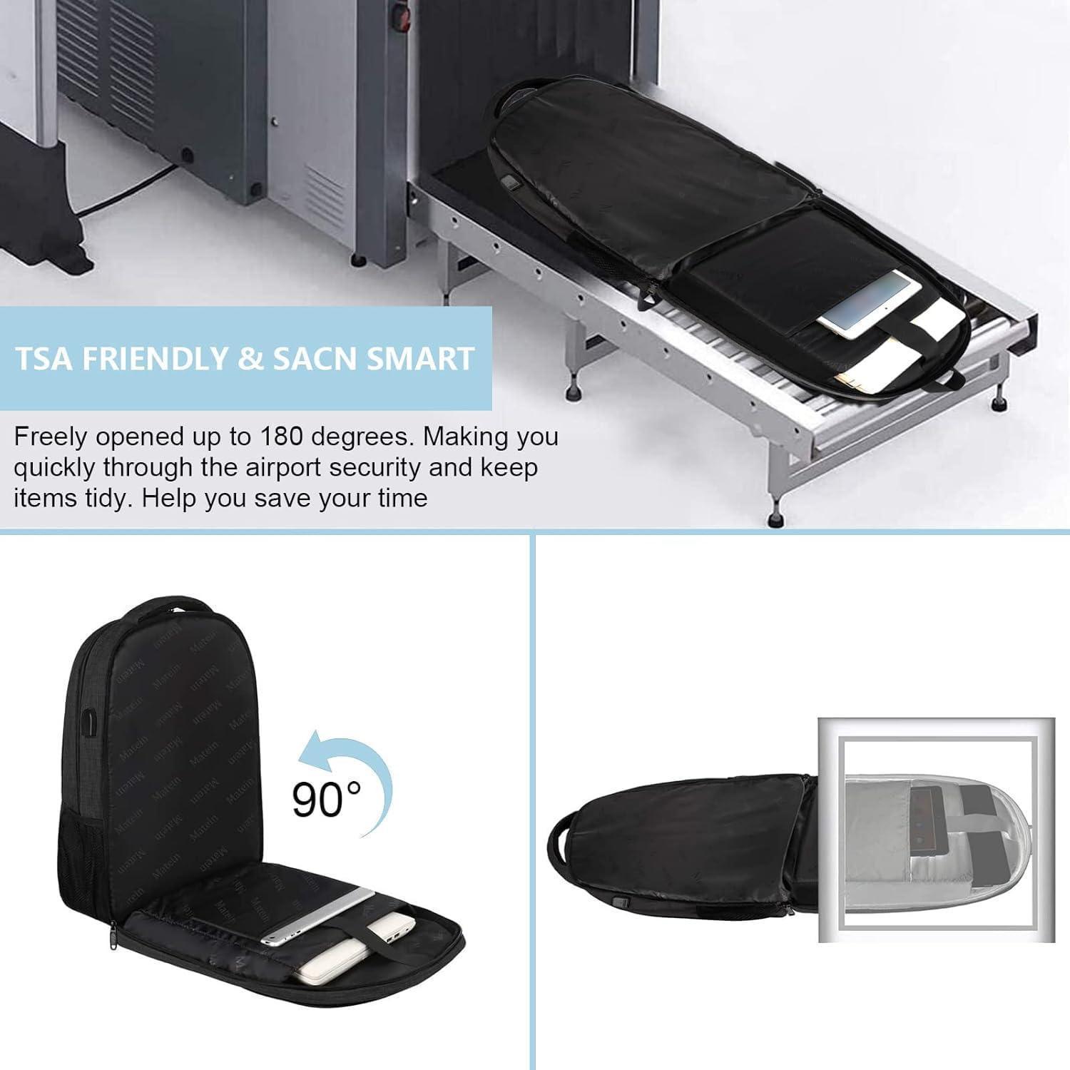 TSA-KONFORMER GROSSER RUCKSACK: Dieser Reise Laptop Rucksack mit USB Ladeanschluss kann problemlos bis zu 180 Grad geöffnet werden, was das Passieren der Flughafensicherheit erleichtert. Die Gepäckbänder ermöglichen es, den Rucksack durch das Griffrohr des Koffers zu schieben und den Transport zu vereinfachen.