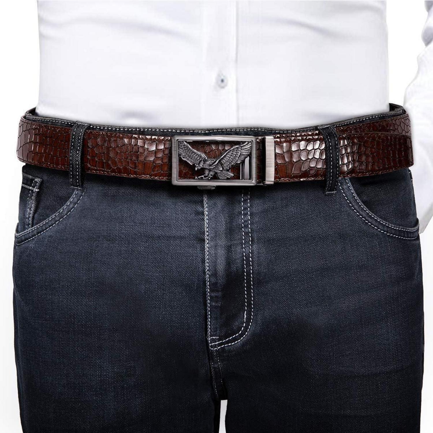 Herren Ledergürtel Schwarzer Ratschengürtel automatische