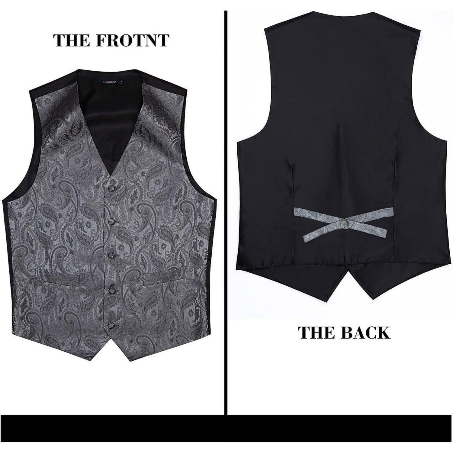 Herren Weste Paisley Floral Jacquard Krawatte Set Grau XS