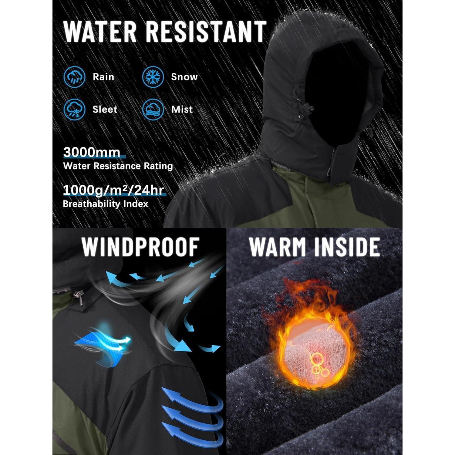 Herren Winterjacke Warme Fleece Ski Kapuze Armeegrün Größe S