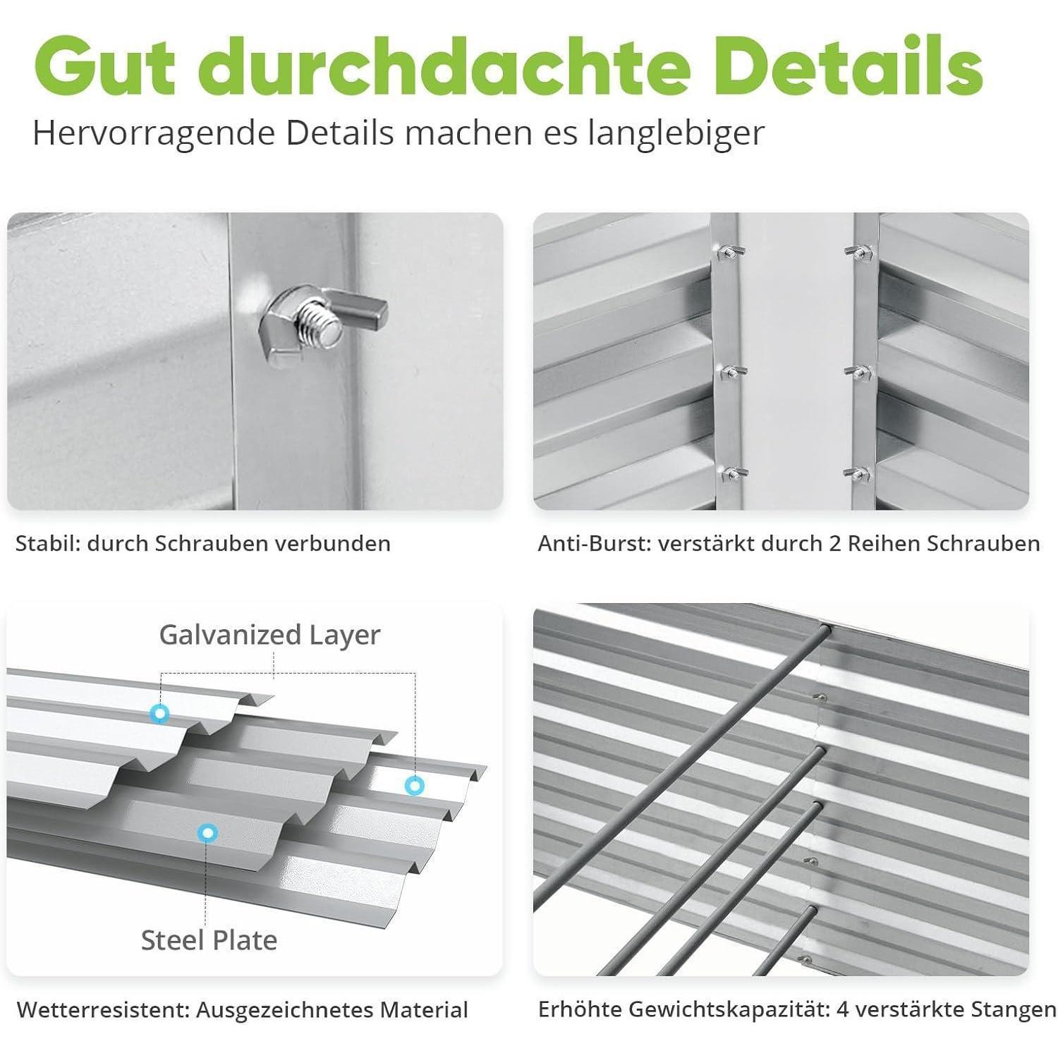 Hochbeet aus Metall 180x90x56cm Kräuterbeet Tomatenkäfigen