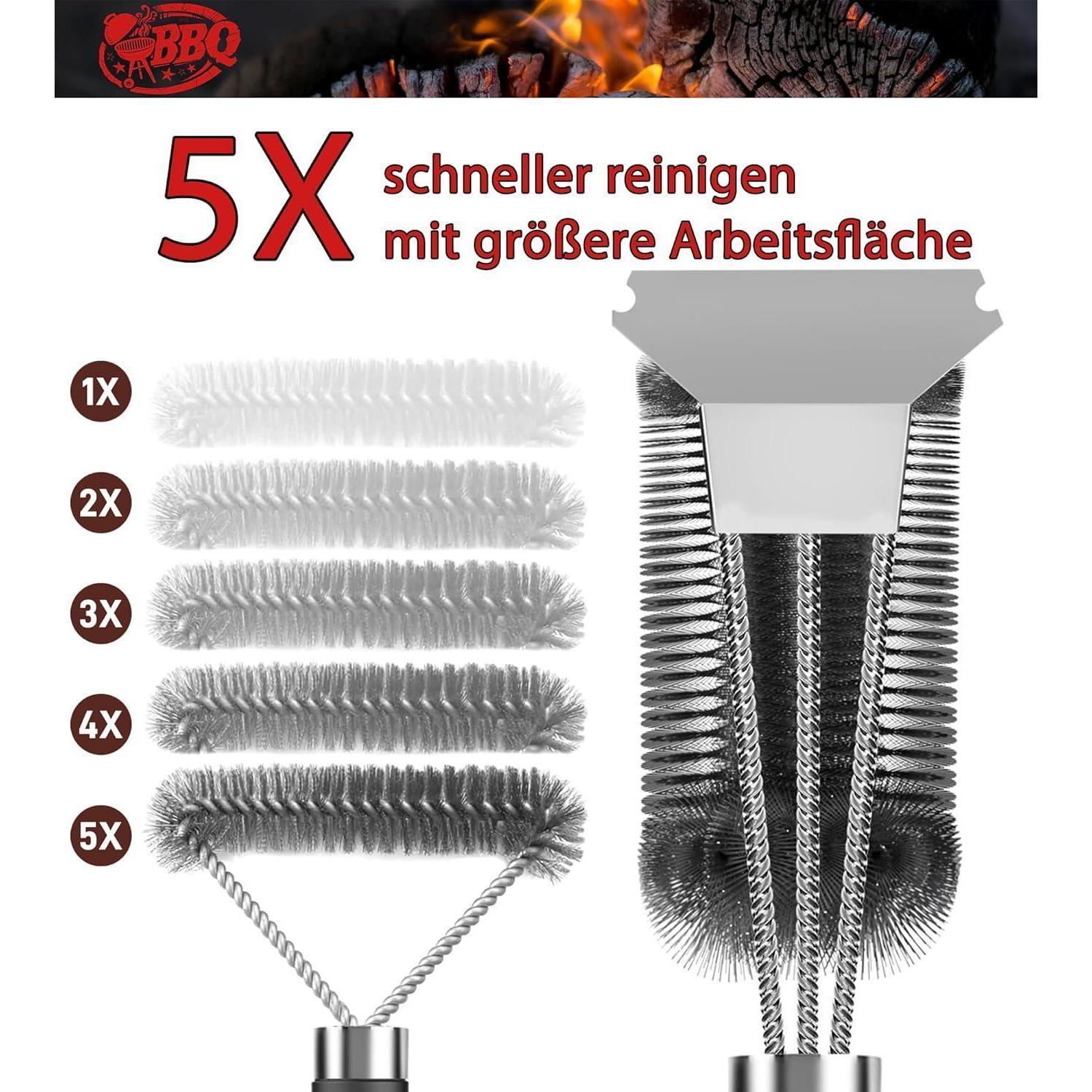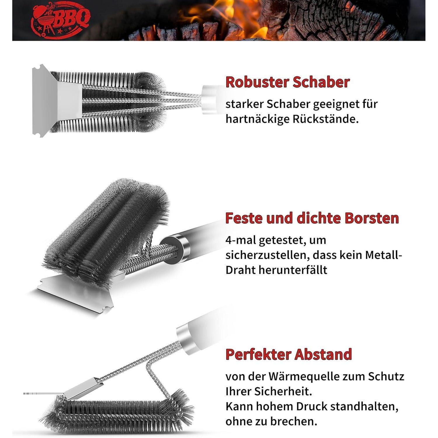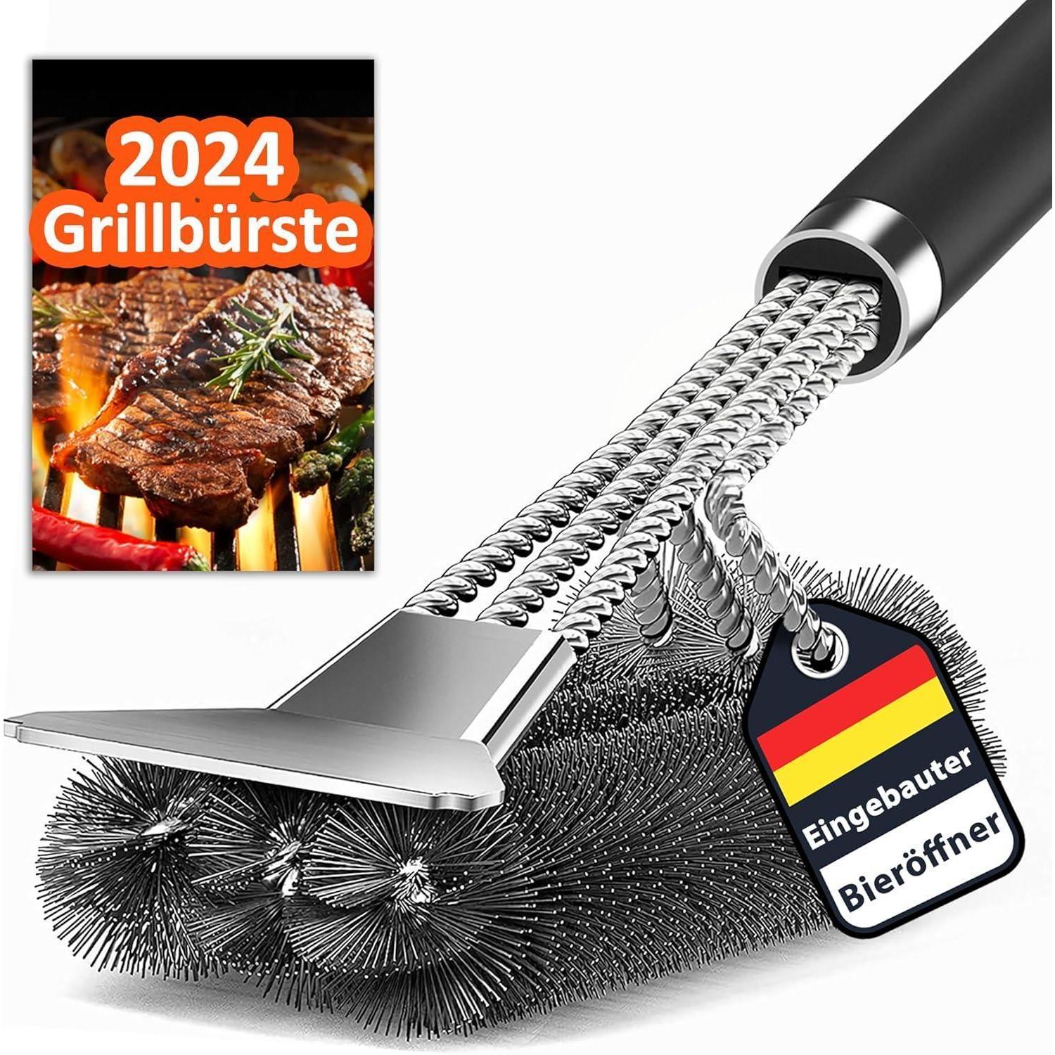 Hochwertige 3 in 1 Grillbürste mit Bieröffner und Spatel