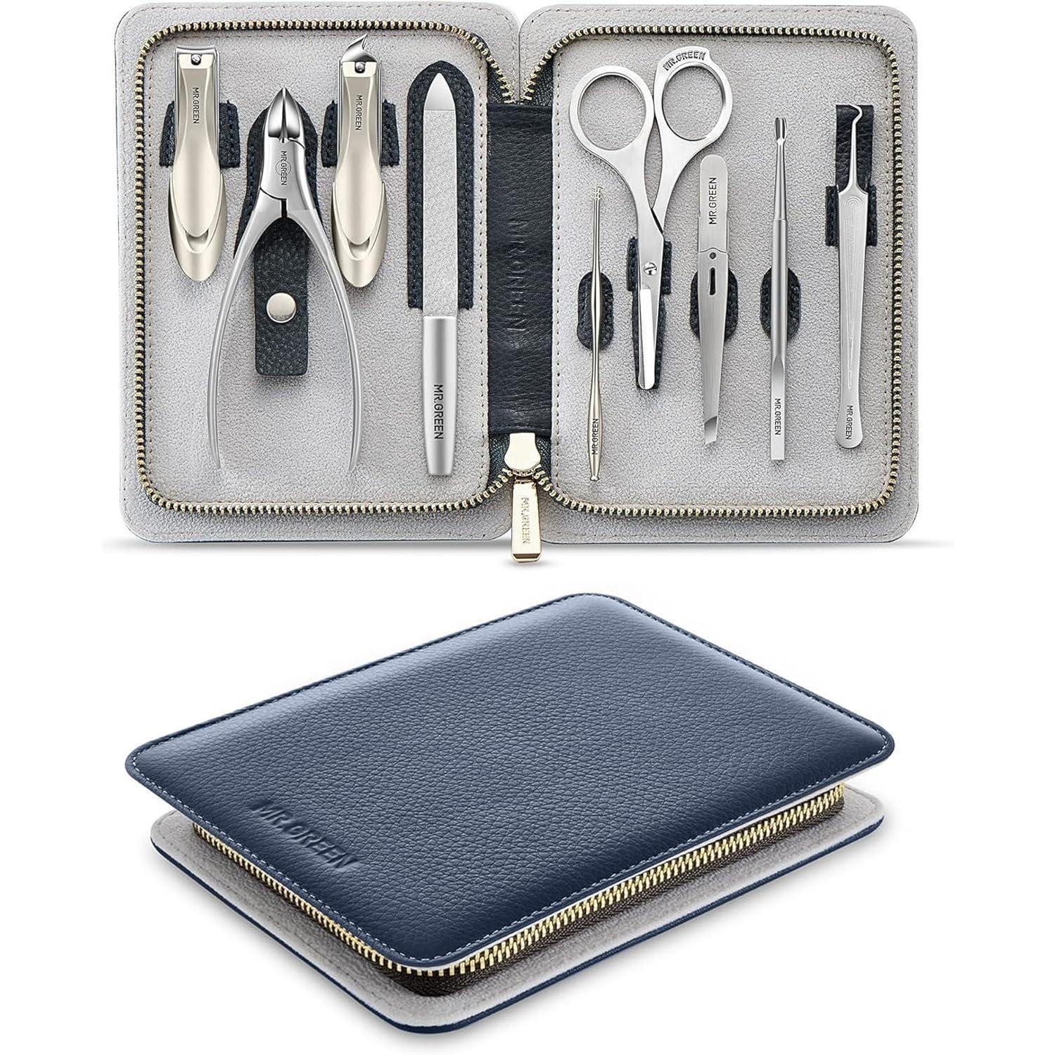 Das MR.GREEN Maniküre Set 9 in 1 ist ein Must-Have für Männer, die auf eine professionelle und hochwertige Nagelpflege Wert legen. Das Set kommt in einem exquisiten Etui aus hochwertigem PU-Ledermaterial, das nicht nur modisch aussieht, sondern auch praktisch für unterwegs ist.