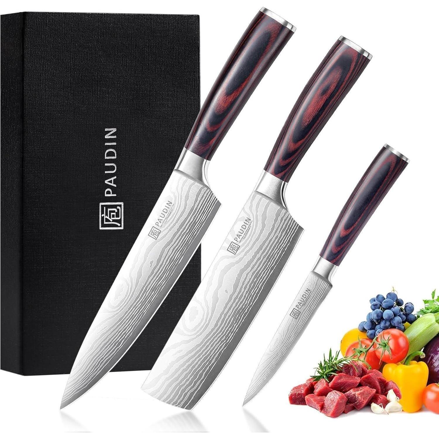 Messerset, Küchenmesser Set 3-tlg aus hochwertigem Carbon Edelstahl