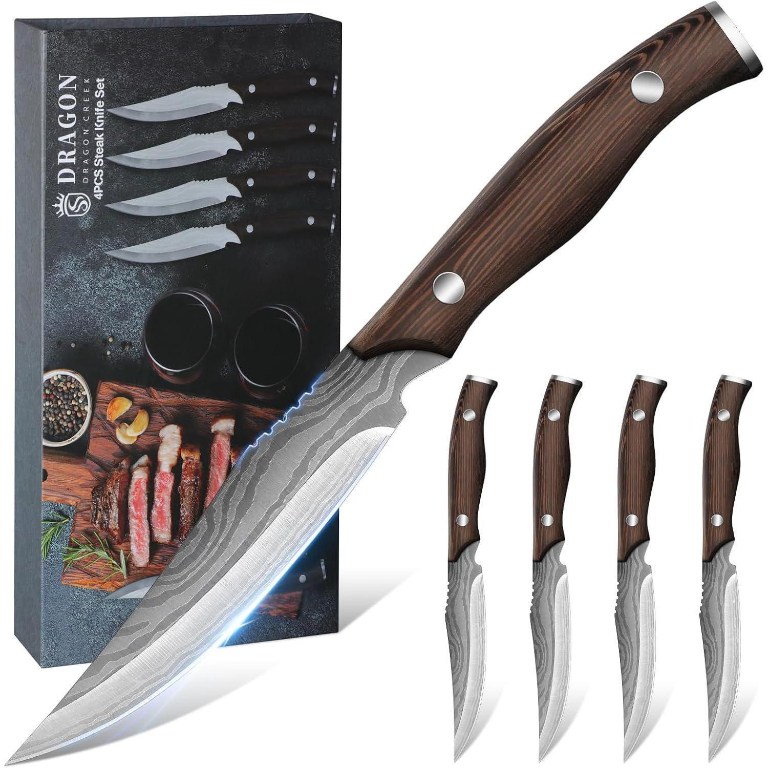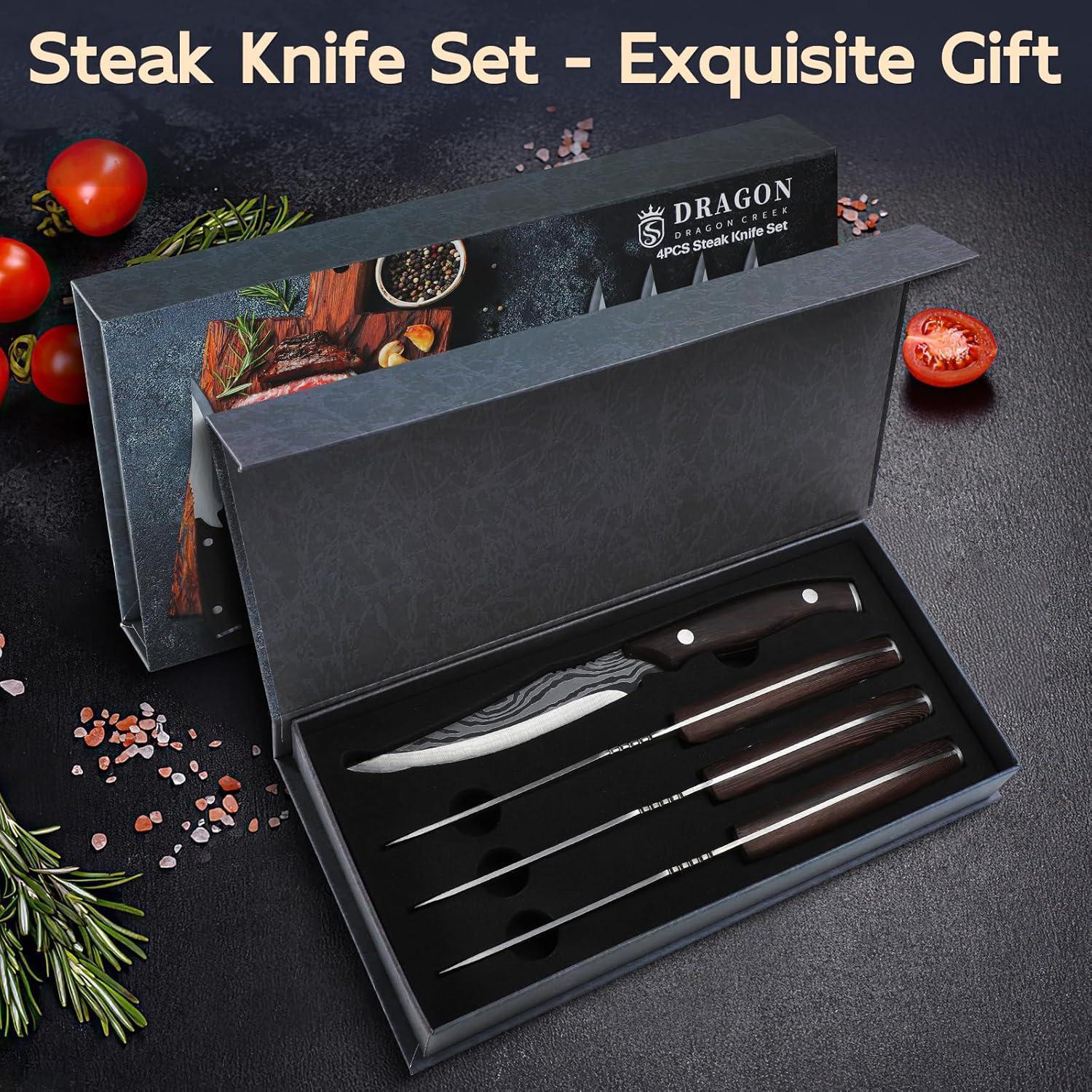 Hochwertiges Steakmesser Set 4-teilig Holzgriff Messer Set