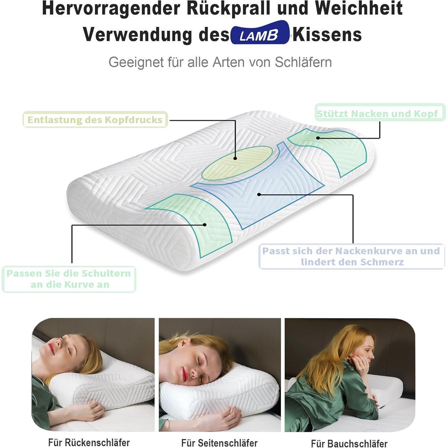 Das höheneinstellbare Design des Kissens ermöglicht es Ihnen, die optimale Höhe für Ihren Nacken und Ihre Schlafposition zu finden. Egal, ob Sie ein Rücken-, Seiten- oder Bauchschläfer sind, das LAMB Memory Foam Kissen passt sich perfekt an Ihre Bedürfnisse an.