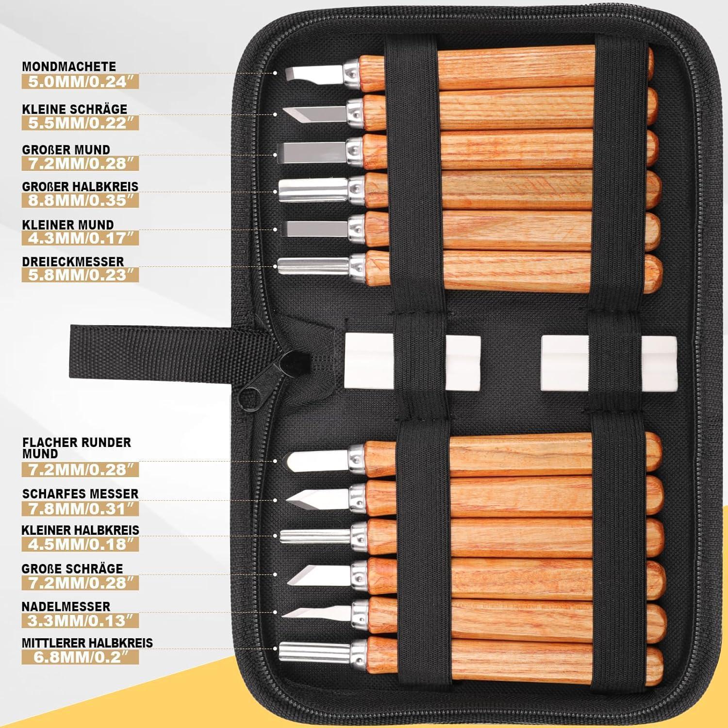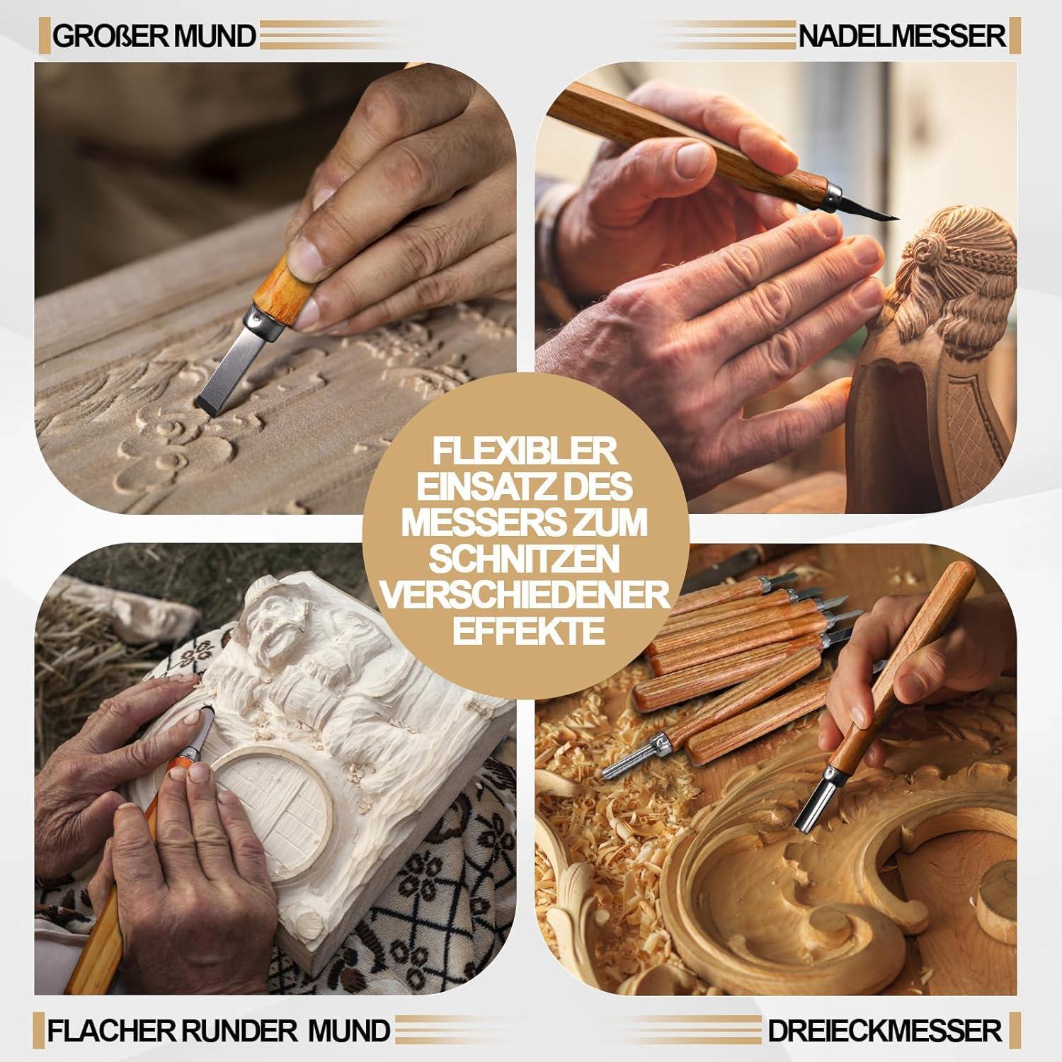 Neben der Verwendung für Schnitzarbeiten eignet sich dieses Set auch zum Schnitzen von weichem und mittelhartem Holz, Obst, Gemüse, Kerzen und Ton. Es ist das ideale Werkzeug für Künstler, Schnitzliebhaber, Heimwerker und alle, die Freude am Gestalten und Schnitzen haben.