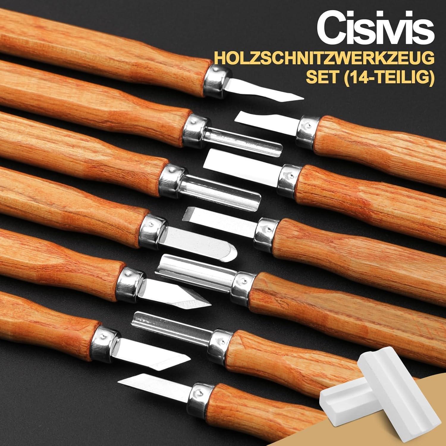 Das Cisivis Holzschnitzwerkzeugset bietet Ihnen die perfekte Ausrüstung, um Ihre kreativen Schnitzprojekte in die Realität umzusetzen. Jedes Schnitzmesser ist aus hochwertigem Chrom-Vanadium-Stahl gefertigt, was sie robust, scharf und langlebig macht. Der ergonomische Holzgriff sorgt für ein angenehmes Gefühl und eine präzise Handhabung während des Schnitzens.
