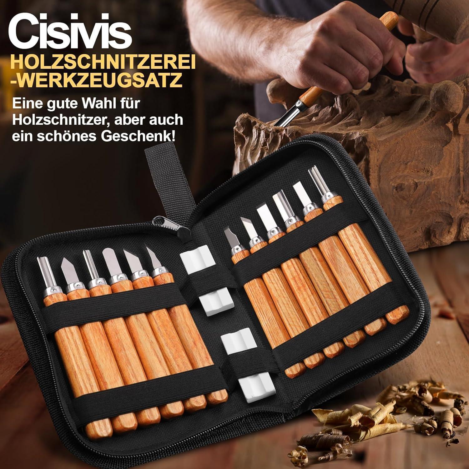 Das Cisivis Holzschnitzwerkzeugset wird mit zwei Schärfsteinen in einer praktischen Werkzeugtasche geliefert, die eine einfache Aufbewahrung und Mitnahme ermöglicht. Egal, ob Sie ein erfahrener Profi oder ein neugieriges Kind sind, dieses Set ist die perfekte Wahl, um Ihre Schnitzkünste zu entfalten und beeindruckende Kunstwerke zu schaffen.