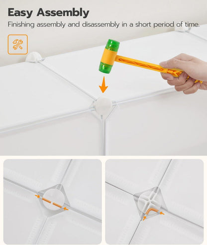 Zusätzlich zu den Schuhen können Sie auch Kleidung, Bücher und mehr in diesem Würfelregal aufbewahren. Die seitlichen Hakenreihen ermöglichen es Ihnen, Taschen, Hüte und andere Accessoires aufzuhängen, um noch mehr Platz zu schaffen.