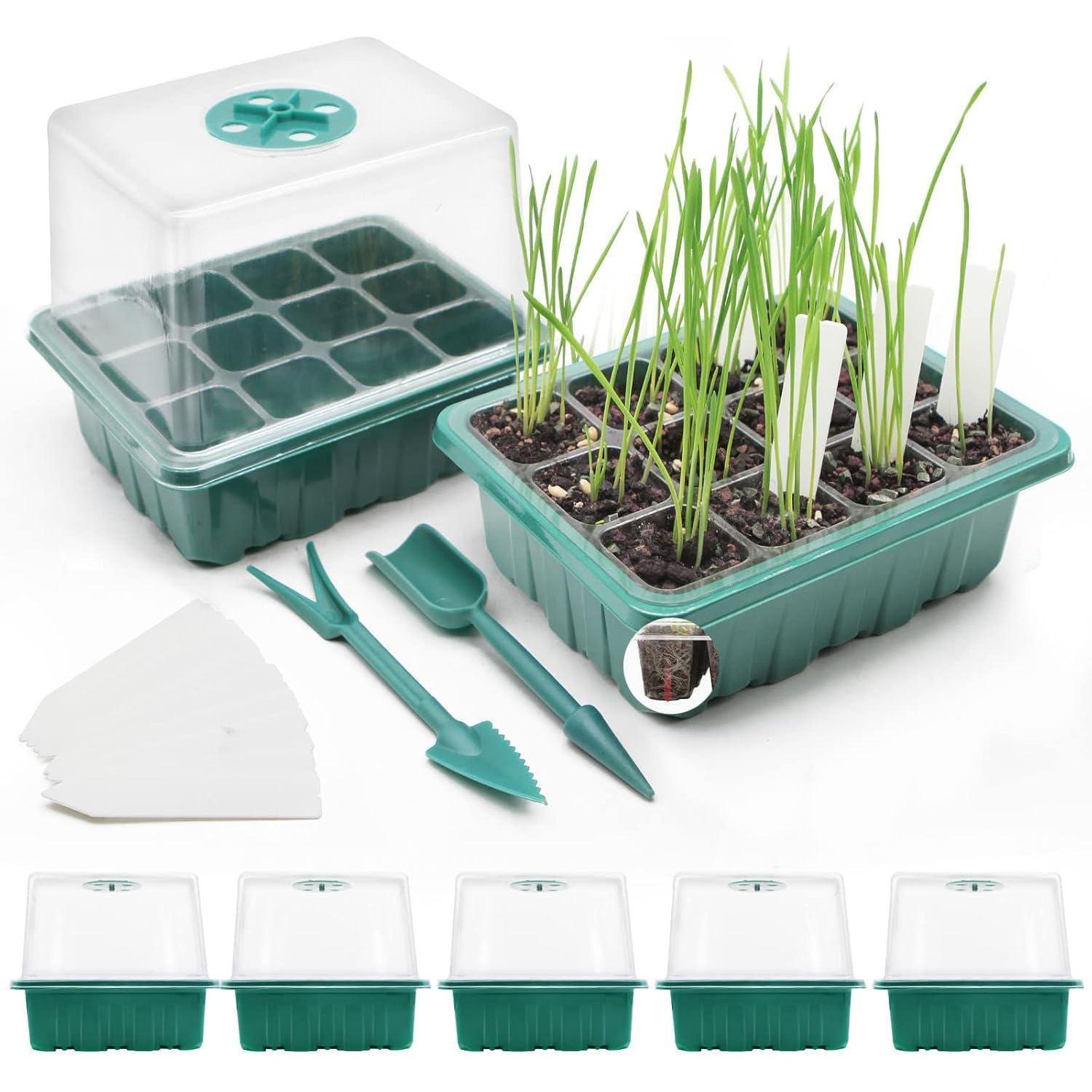 Das MQFORU Zimmergewächshaus Anzuchtkasten-Set bietet eine ideale Umgebung für das Wachstum von Pflanzen und die Keimung von Samen. Hergestellt aus hochwertigem verdicktem PET-Material, sind die Anzuchtkästen langlebig, leicht und wiederverwendbar. Das Set besteht aus 5 Bodenschalen, 5 durchsichtigen 12-Loch-Einsatzschalen, 5 transparenten Deckeln, 5 einstellbaren Feuchtigkeitsschaltern, 10 Pflanzenetiketten und 2 Aussaatwerkzeugen.