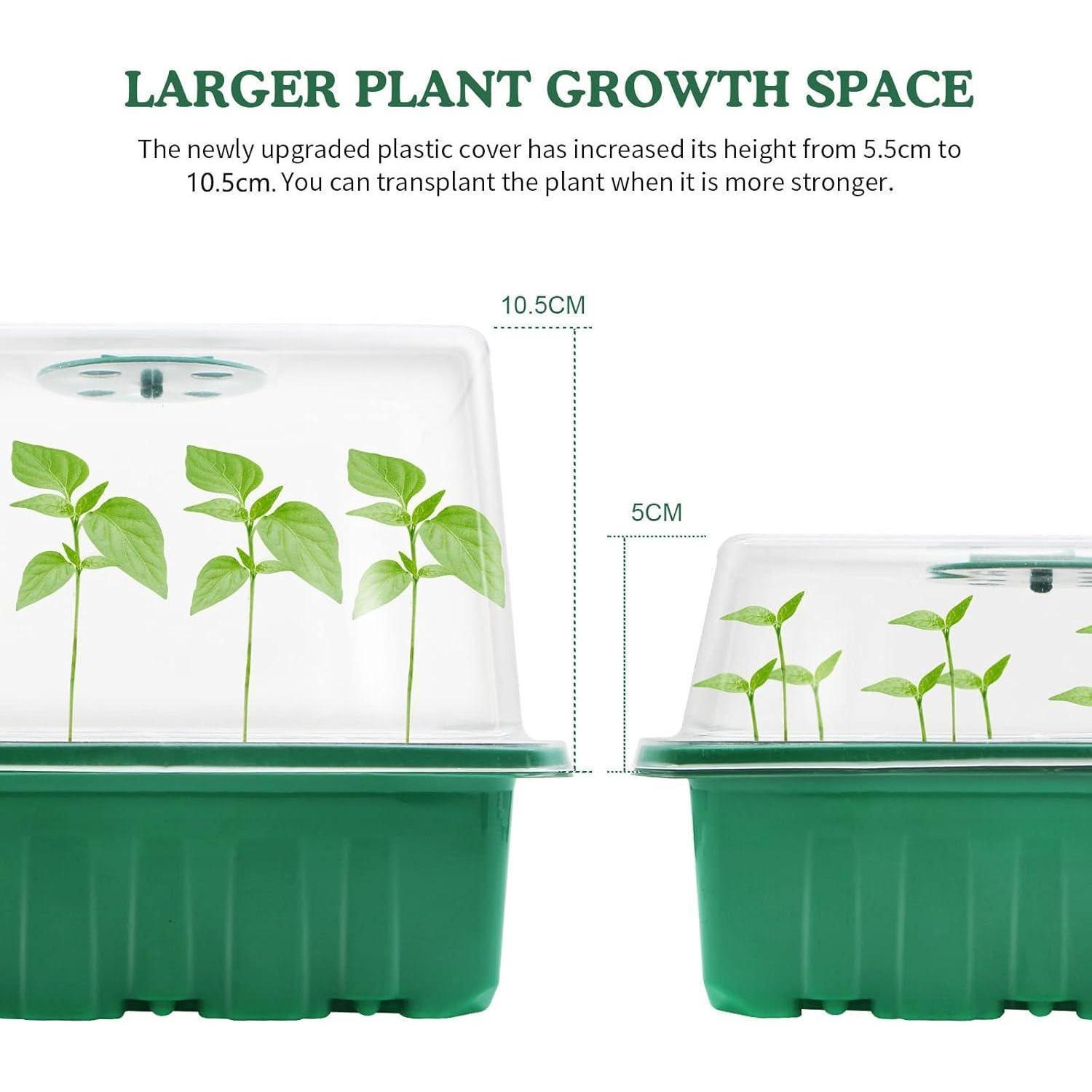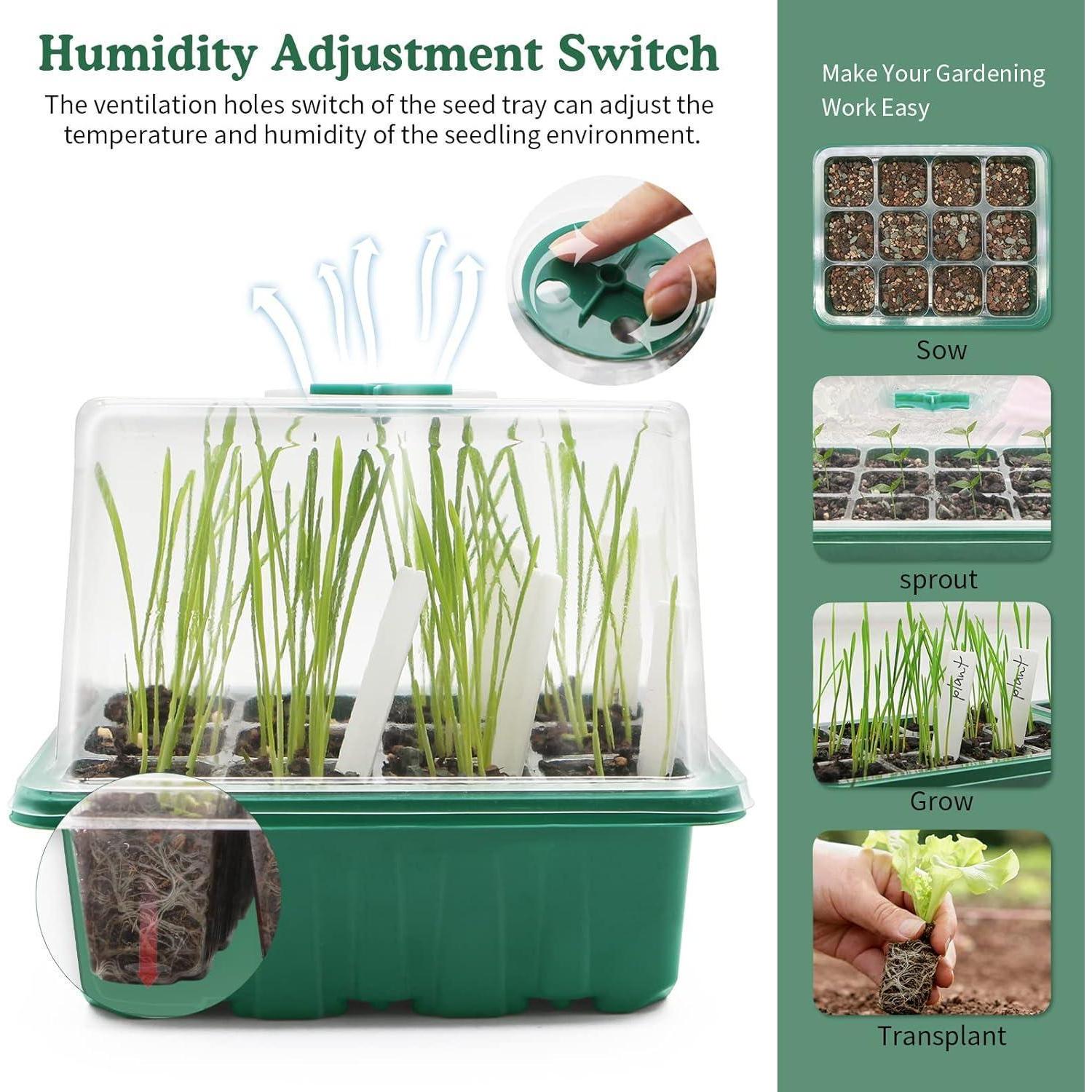 Der kristallklare Deckel des Mini Gewächshauses absorbiert natürliches Sonnenlicht und verfügt über 4 einstellbare Belüftungsöffnungen, um Feuchtigkeit und Luftstrom zu regulieren. Dies fördert das Samenwachstum und verbessert die Keimrate. Die transparenten Schalen ermöglichen es Ihnen, das Pflanzenwachstum zu beobachten und mit den mitgelieferten Pflanzenetiketten zu verfolgen.