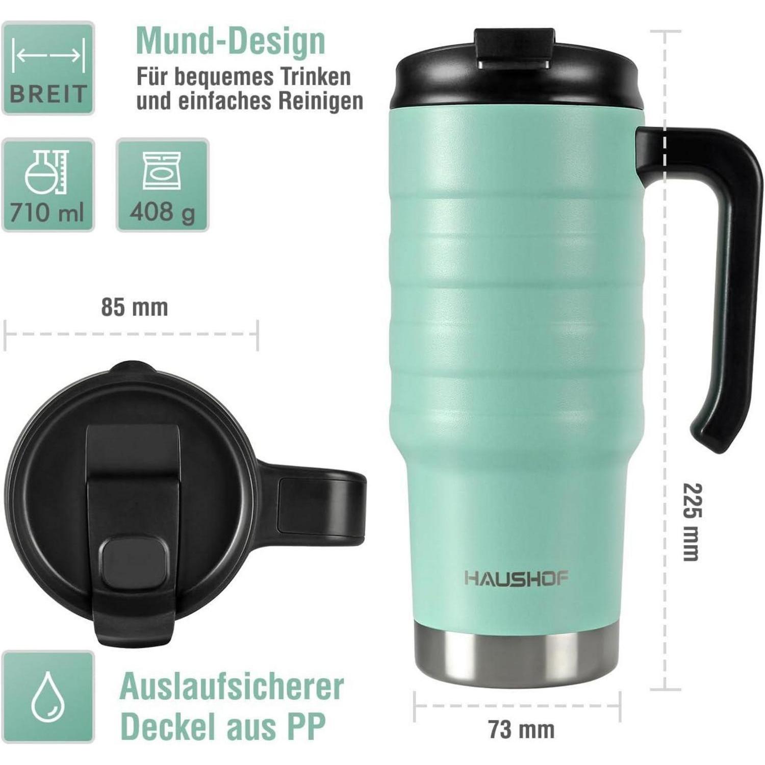Der ergonomische Griff macht das Halten des Bechers mühelos und komfortabel. Zudem erleichtert der breite Mund des Bechers die Reinigung, sodass du ihn jederzeit wieder einsatzbereit hast. Mach den HAUSHOF Isolierbecher Thermobecher zu deinem täglichen Begleiter und genieße deine Getränke immer frisch und optimal temperiert.