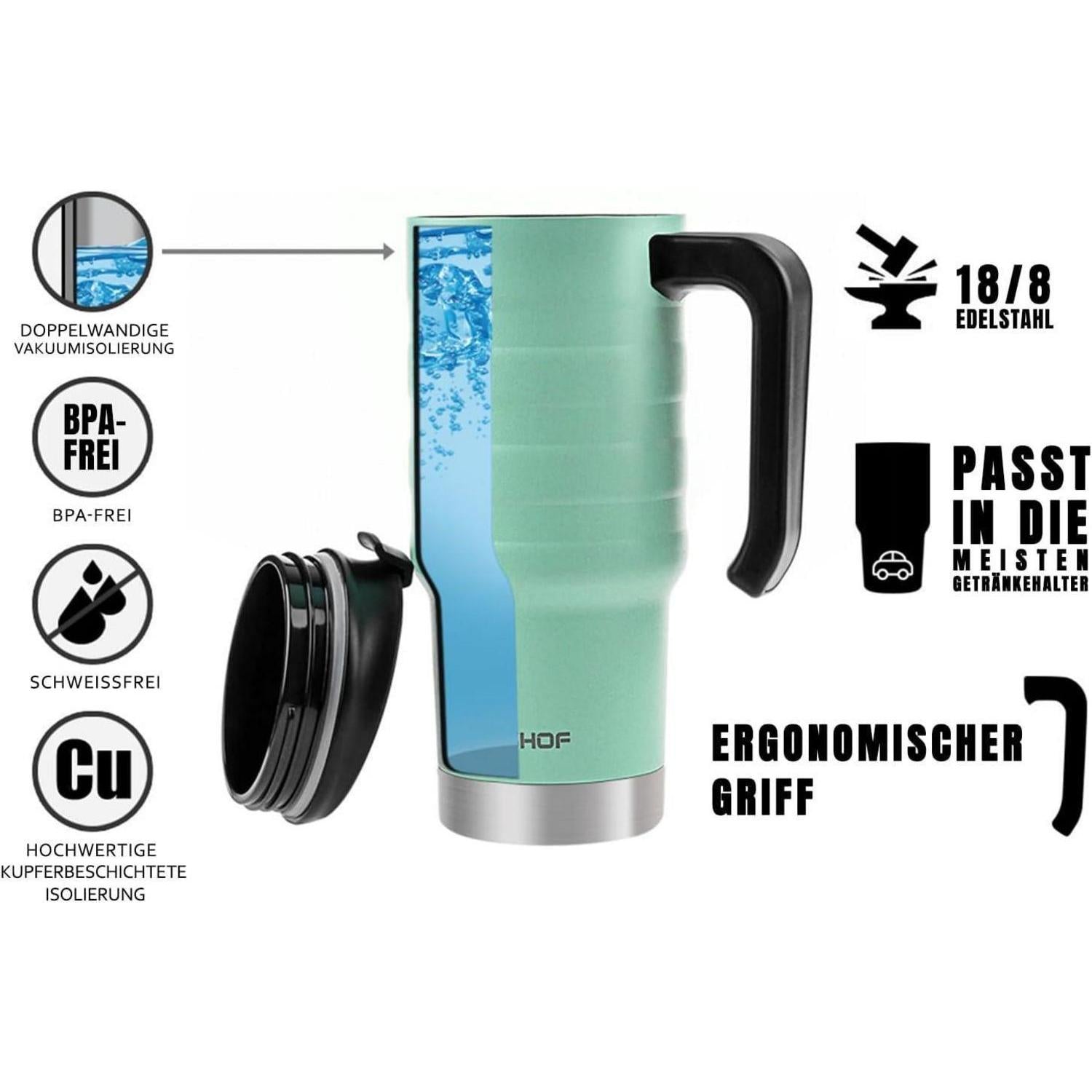 100% BPA Frei - Der Thermobecher enthält KEINE BPA oder andere Schadstoffe, um die Gesundheit zu schützen.