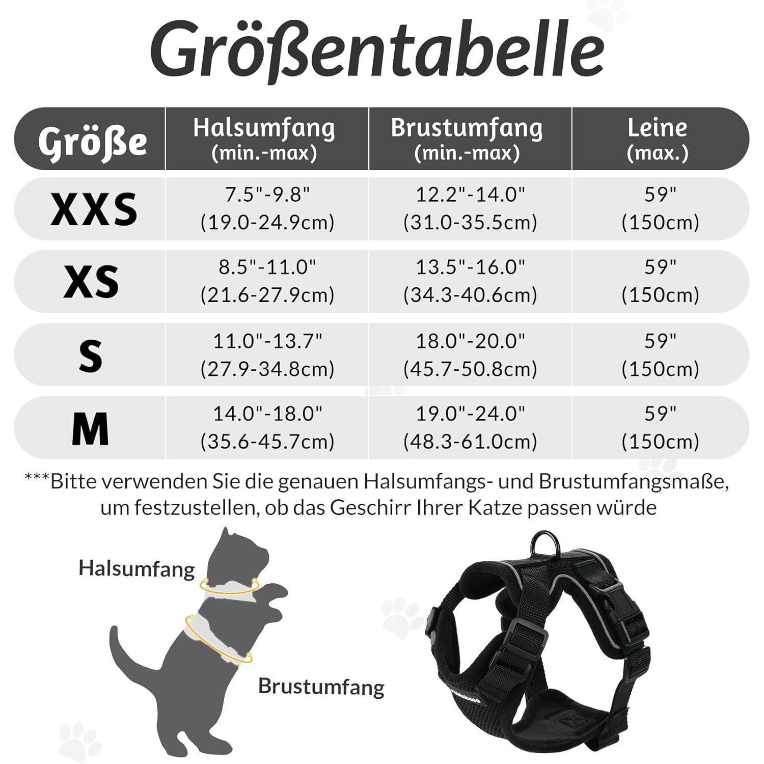 Katzengeschirr mit Leine Schwarz Softgeschirr verstellbar