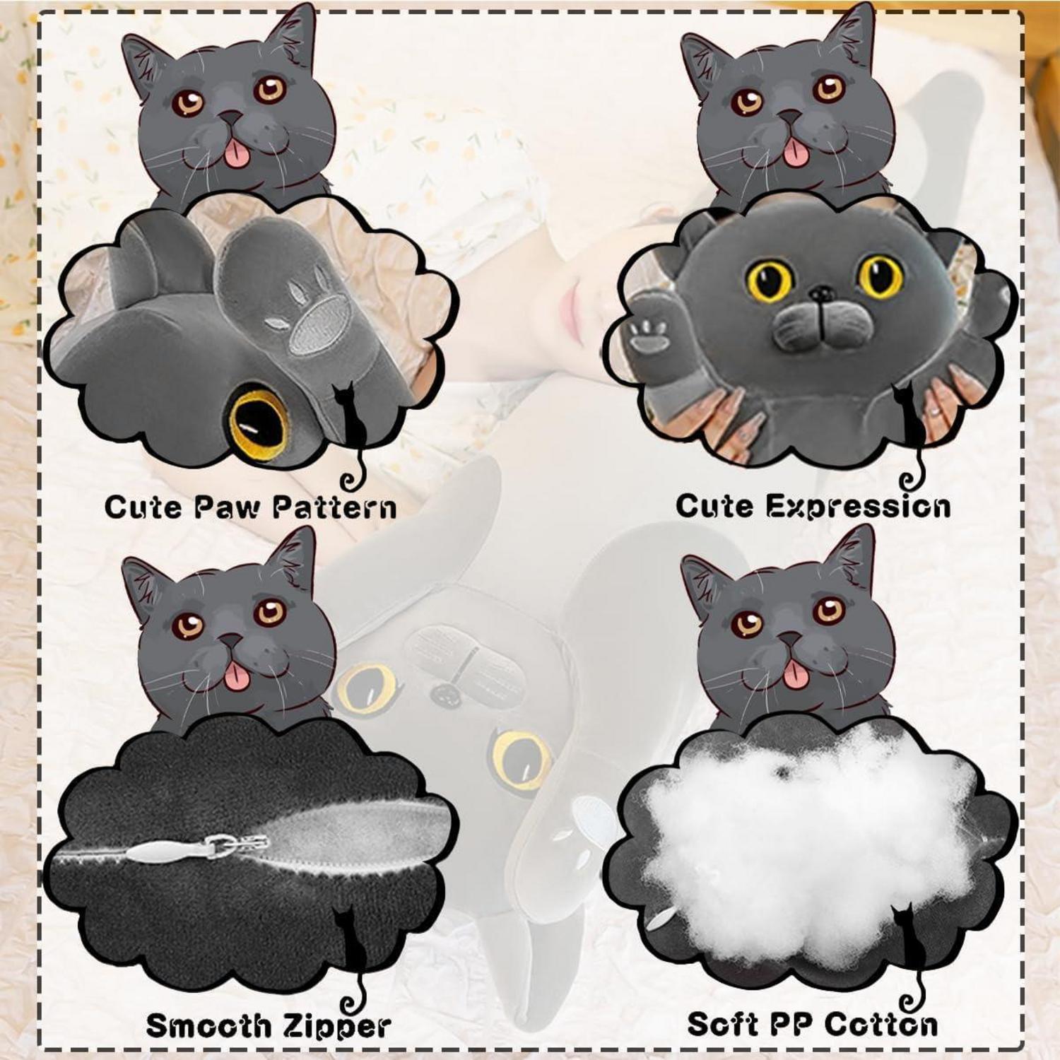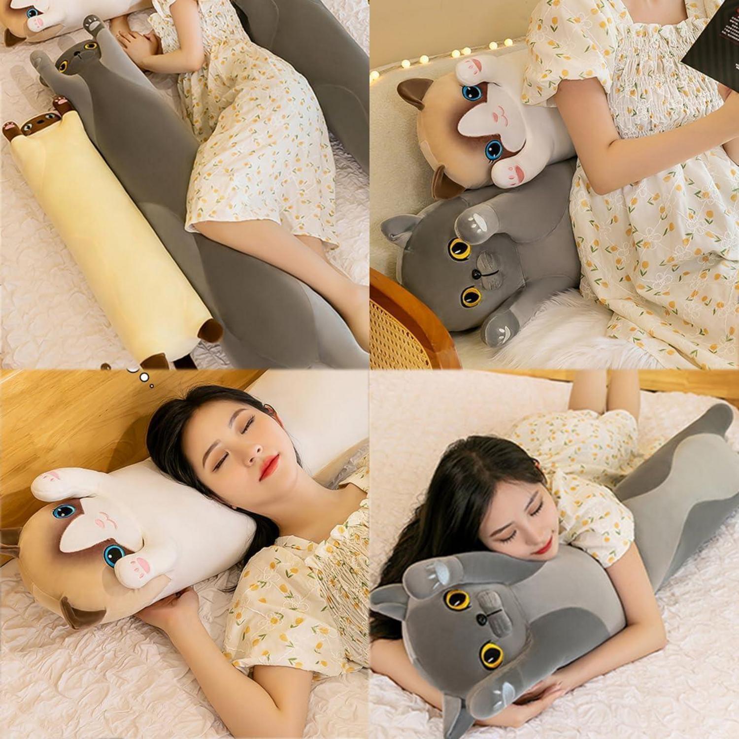 Kuscheltier XXL: Mit einer Länge von 90cm wird dieses Plüschkatzenkissen sicherlich zu einem geliebten Begleiter für Kinder und Erwachsene.