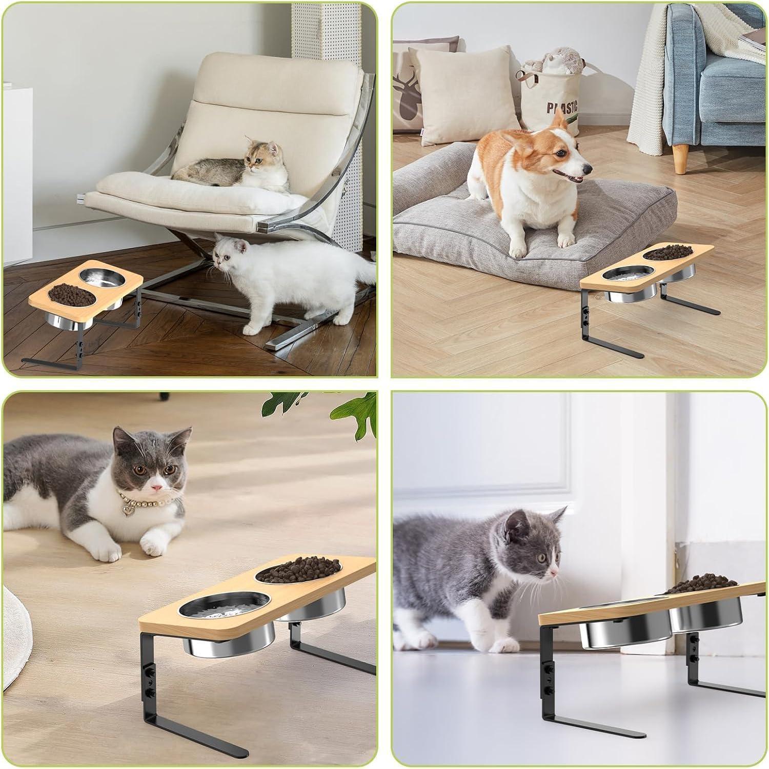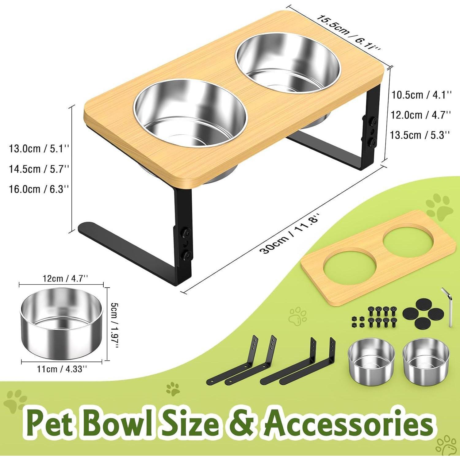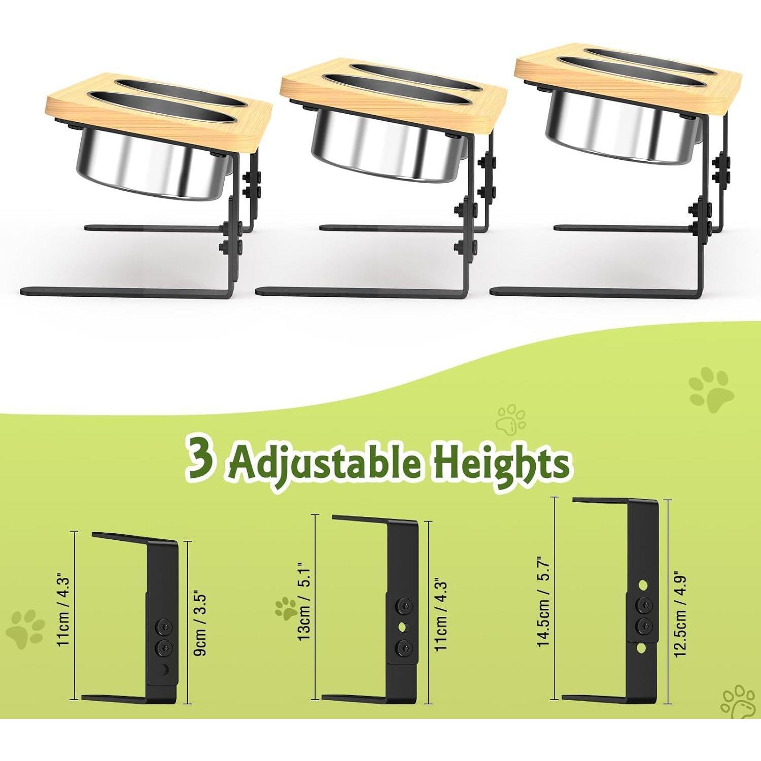 Der hochwertige und langlebige Napfständer aus Holz ist mit einer Bambus- und Metallhalterung sowie 2 rostbeständigen, abnehmbaren Edelstahlnäpfen ausgestattet - perfekt für Futter und Wasser. Die Anti-Rutsch-Pads an den Beinen sorgen für Stabilität und verhindern ein Verrutschen während des Fressens.