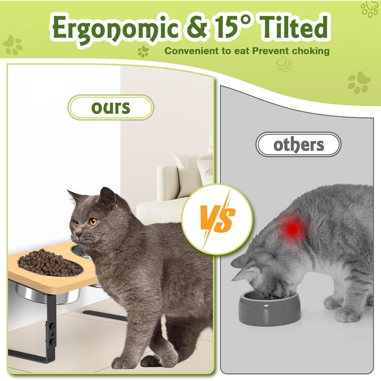 Der Oneyus Katzennapf vereint Funktionalität mit liebevollem Design, um Ihrer Katze ein angenehmes und gesundes Esserlebnis zu bieten. Der erhöhte Futternapf ist um 15° geneigt, um den Druck auf den Hals und die Gelenke zu verringern. Zudem können Sie zwischen 3 verschiedenen Höhen (11 cm, 13 cm, 14,5 cm) wählen, was ihn ideal für Katzen jeglicher Größe macht.