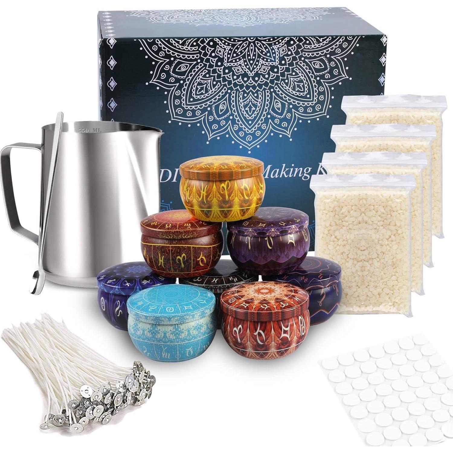 Komplettes Starter-Set - Enthält alles, was man zum Kerzen Selber Machen braucht: Kerzendochte, Soja Waxs, Kerzendosen, Kerzendocht Aufkleber und mehr.