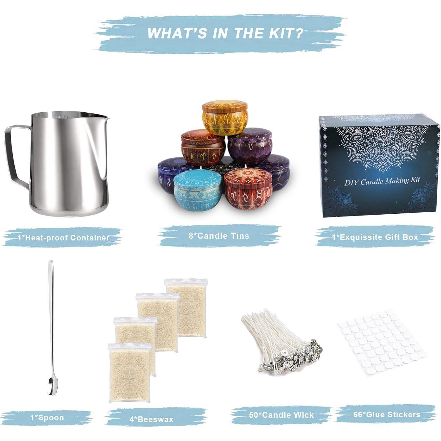 Kerzen Selber Machen Set für Erwachsene und Kinder-Kerzendochte *50,Soja Waxs,Kerzendosen *8,Kerzendocht Aufkleber,Kerzen Kunst Und Bastelbedarf Für Anfänger,Muttertag,Geburtstag