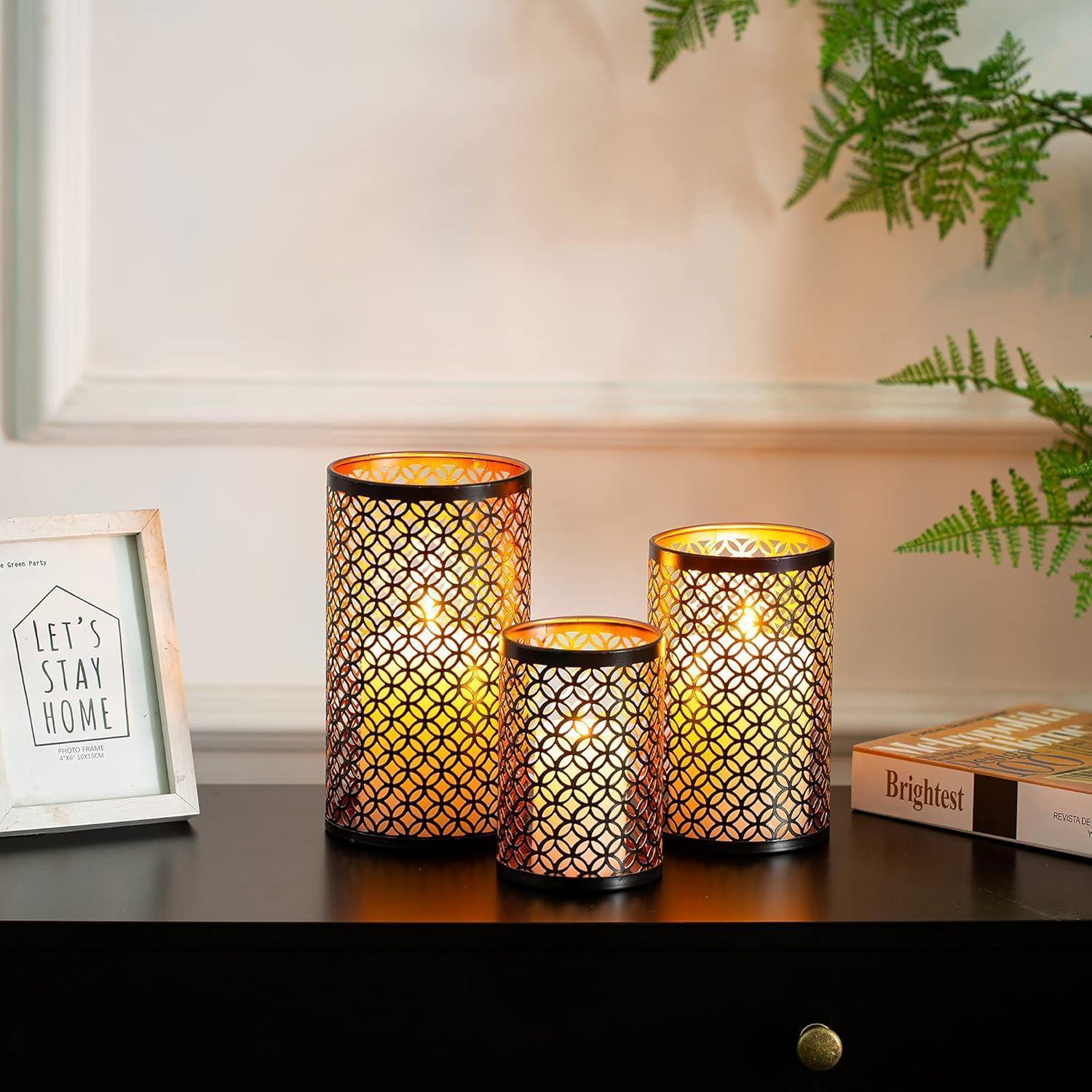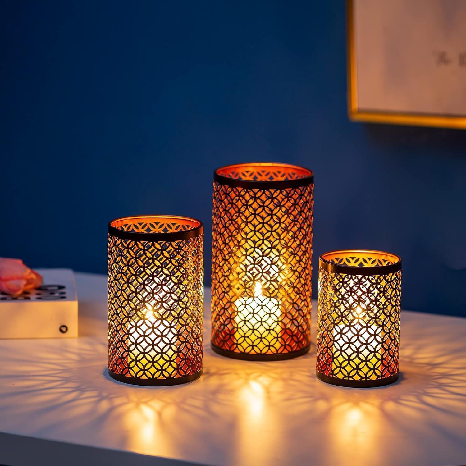 Kerzenhalter Set Schwarz Gold Metall 3er Teelicht