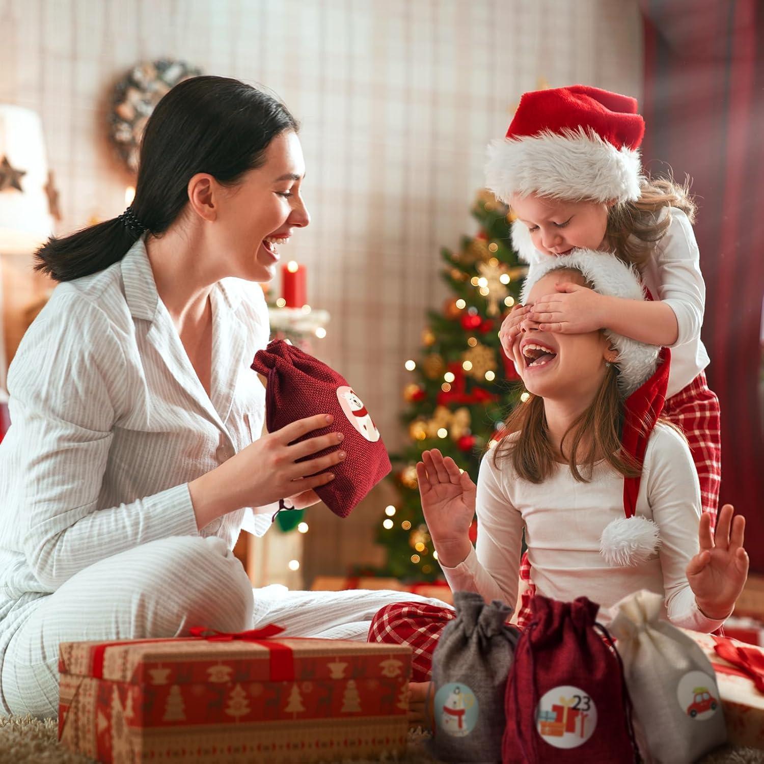 Hängen Sie die Säckchen am Kamin, an der Treppe, an Girlanden oder am Weihnachtsbaum auf, um eine festliche Atmosphäre zu schaffen. Mit den mitgelieferten Weihnachtsaufklebern in verschiedenen Stilen und den Holzklammern können Sie den Kalender nach Belieben dekorieren und personalisieren.