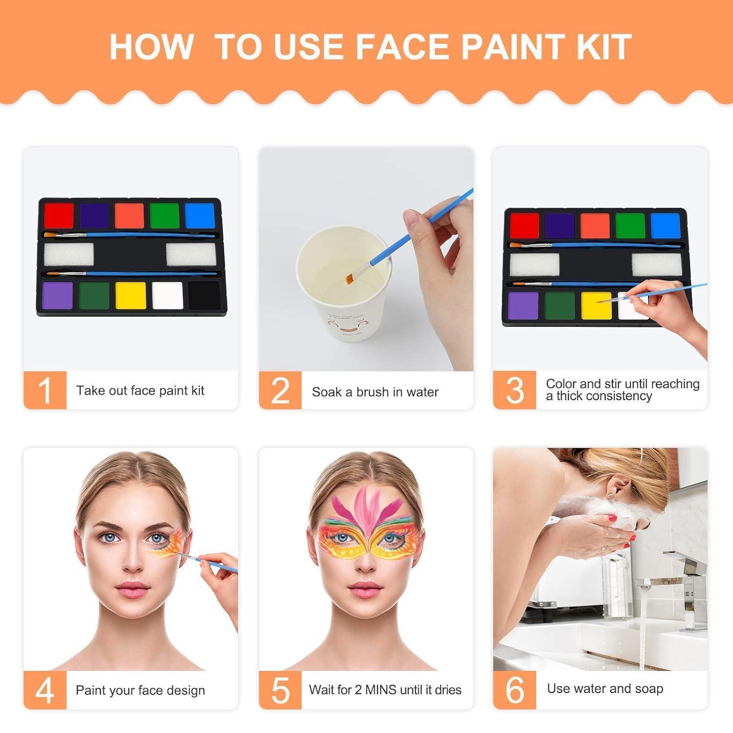 Kinderschminke Set Halloween Face Paint Kinder 10-Farben